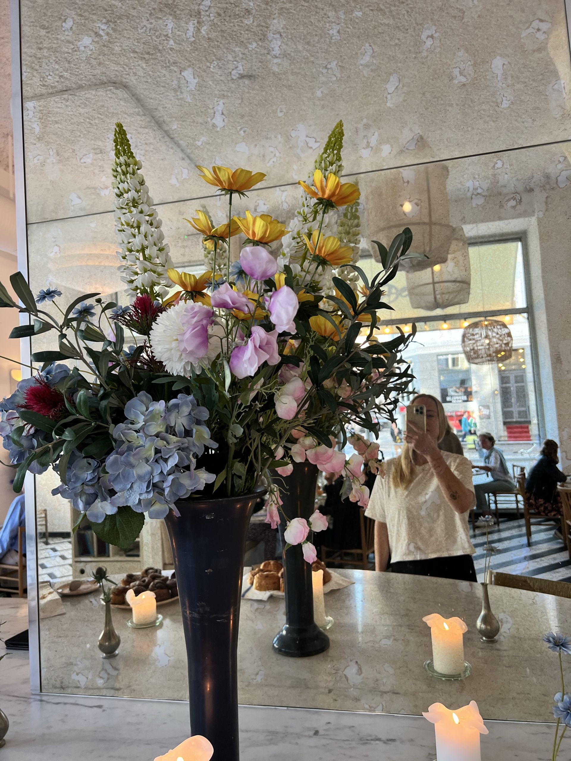 - Frühstück im Delphine – der Laden ist so gut. Allein, wie die Avocados zum Frühstück angerichtet werden, ist typisch Kopenhagen. Ebenso schön sind das mediterrane Interieur und die künstlichen Blumen. Und die Eier sind auf den Punkt 6,5 Minuten gegart – nicht komplett hart und das Eigelb blau. Halleluja!
