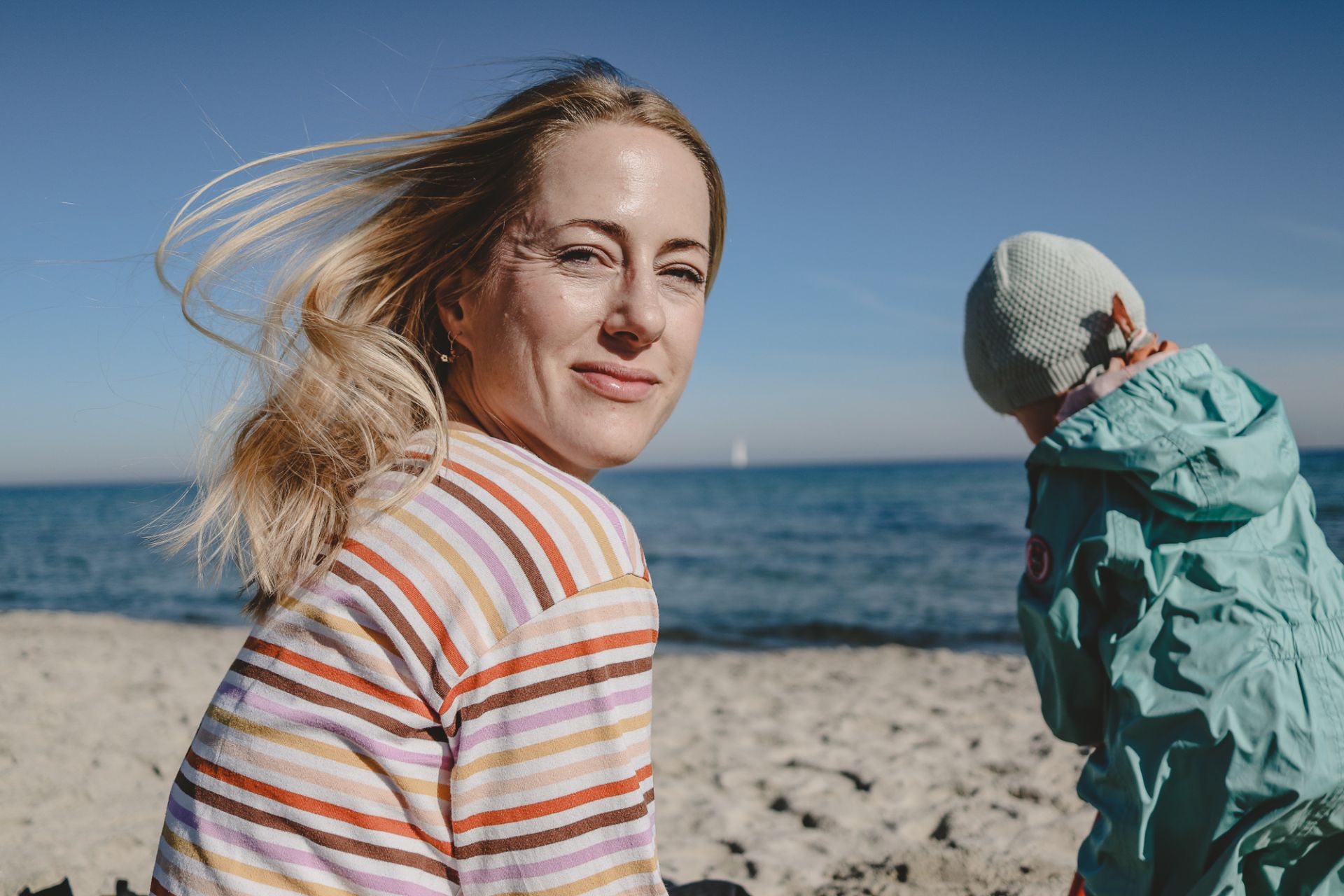 Ausschlafen im Urlaub? Haha! Unsere Mädels waren alle spätestens um 6 Uhr wach. Wir haben zusammen gefrühstückt, die Kleinen dann in den Bollerwagen oder die Trage gepackt und sind erst zum Spielplatz und später zum Strand gelaufen. Auf dem Weg gab es Hörnchen, Fischbrötchen und Eis im Café Lindquist. Das ist ein hübsches Café im skandinavischen Stil und Marimekko-Kissen, wo man gut draußen auf der Terrasse sitzen und viele leckere Snacks essen kann. Allerdings macht es erst um 11 Uhr auf – für uns Frühaufsteher ganz schön spät, aber wir haben gerne gewartet.