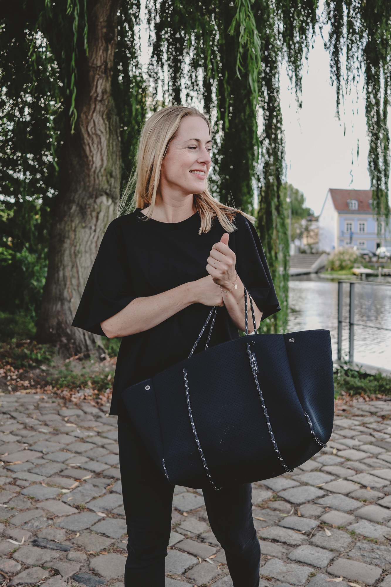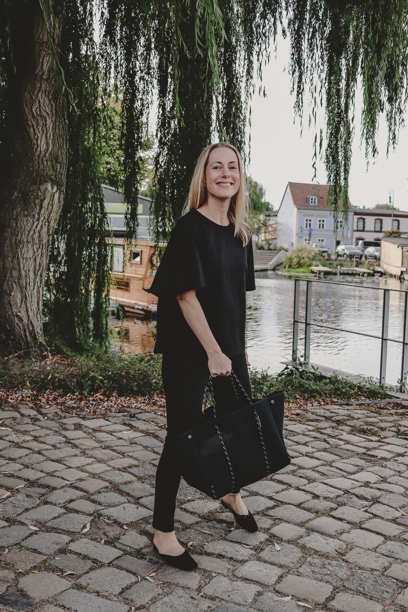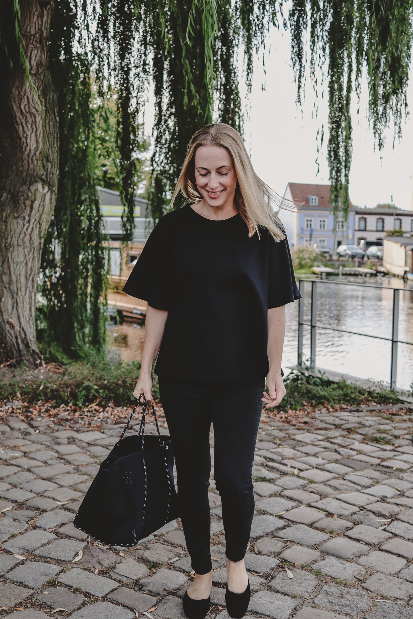 Top mit Raglan-Ärmel: Cos, Jeans: Acne Studios, Tasche: State of Escape, Mules: Flattered (wieder alle Größen auf Lager!)