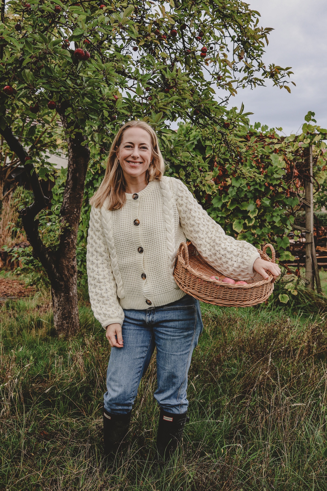Cardigan: Gestuz, Jeans: Closed, Gummistiefel: Hunter