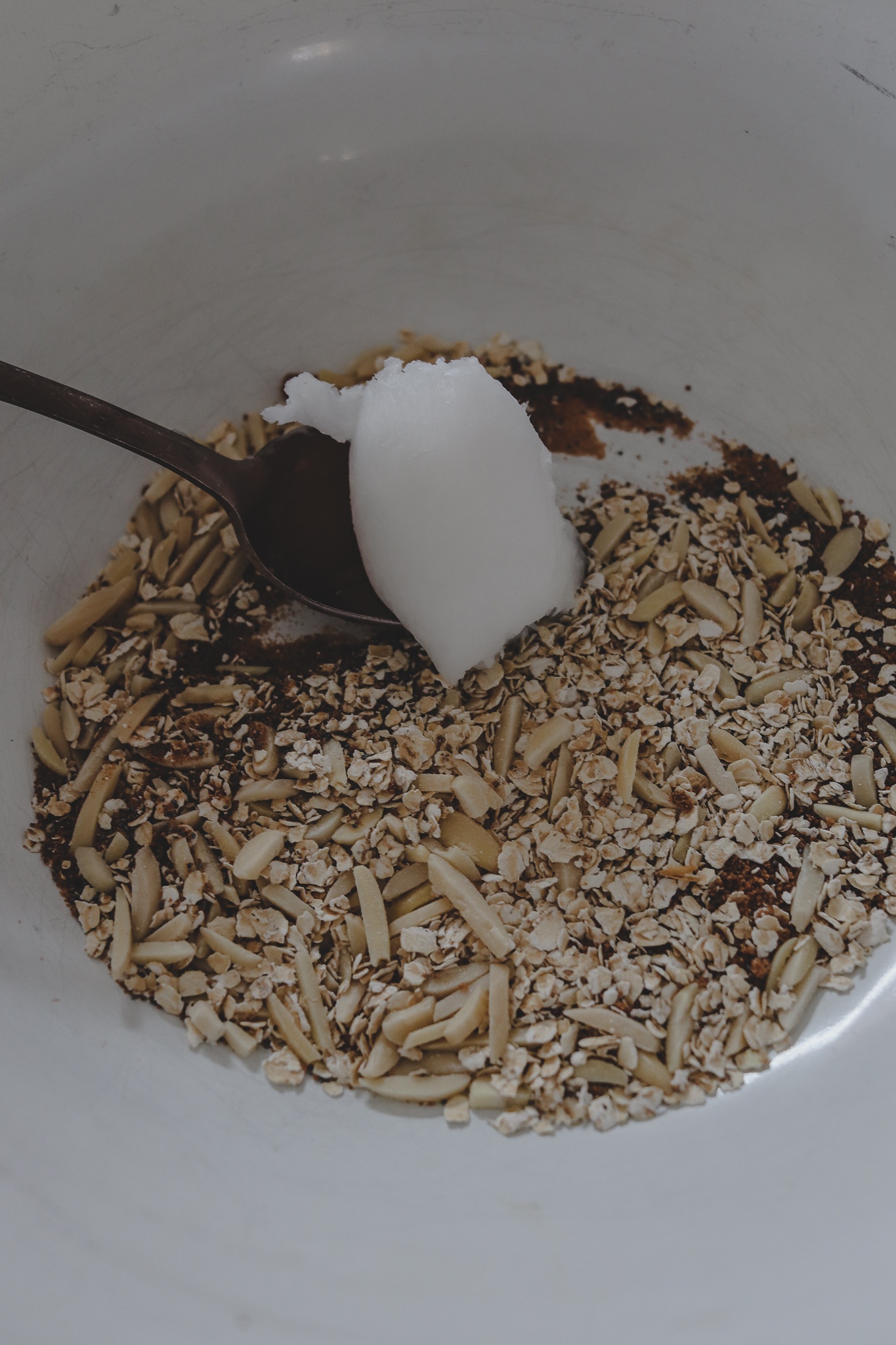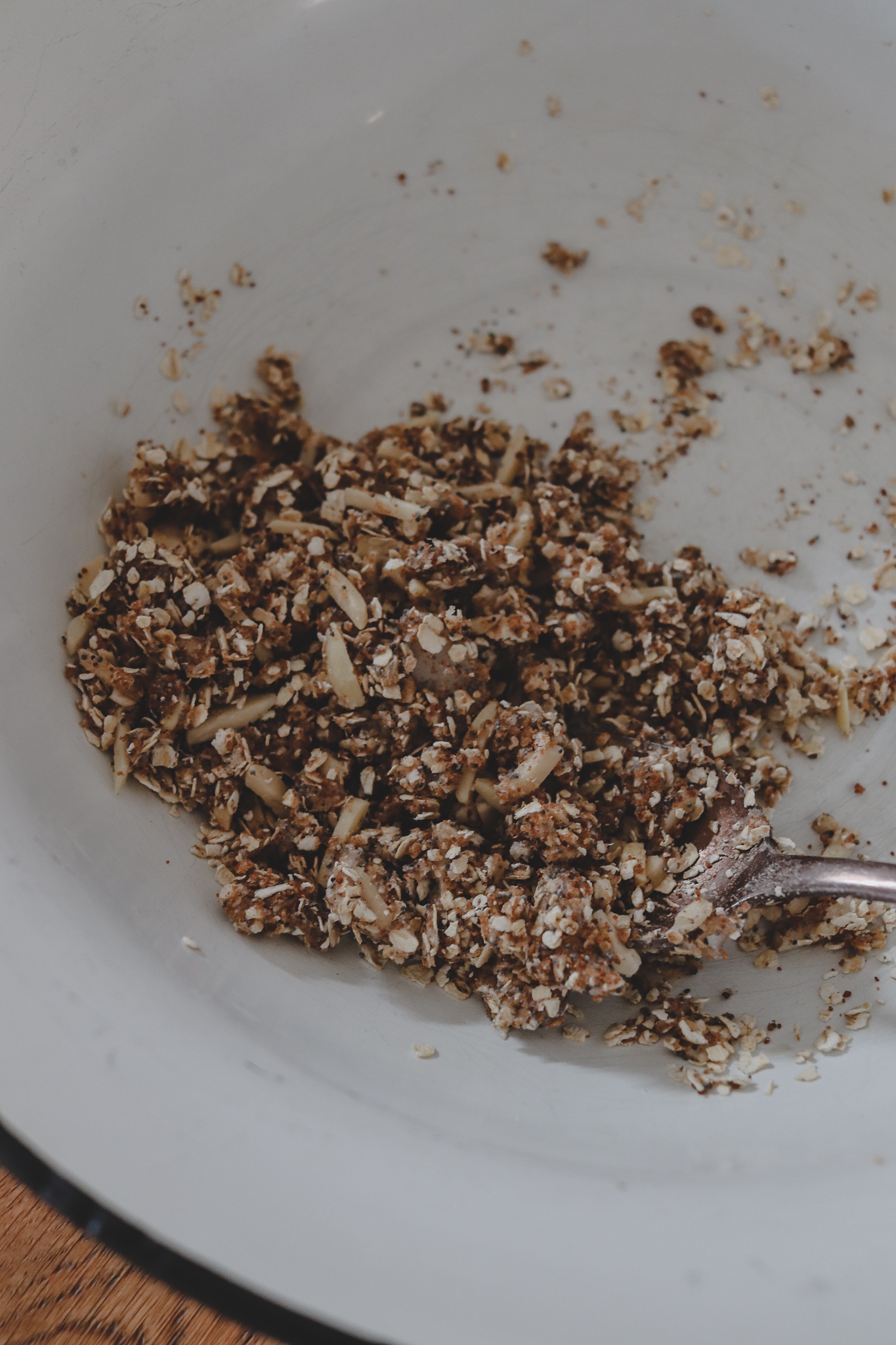 Für die Streusel alle anderen Zutaten in einer großen Schüssel mischen, bis eine krümelige Teig-Masse entsteht. Abschmecken: lecker? Falls euch noch mehr Süße fehlt, dann gerne mehr Kokosblütenzucker verwenden. Ich mag bei Äpfeln und Birne außerdem eine Prise Zimt.