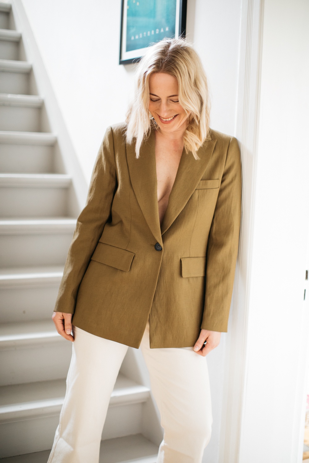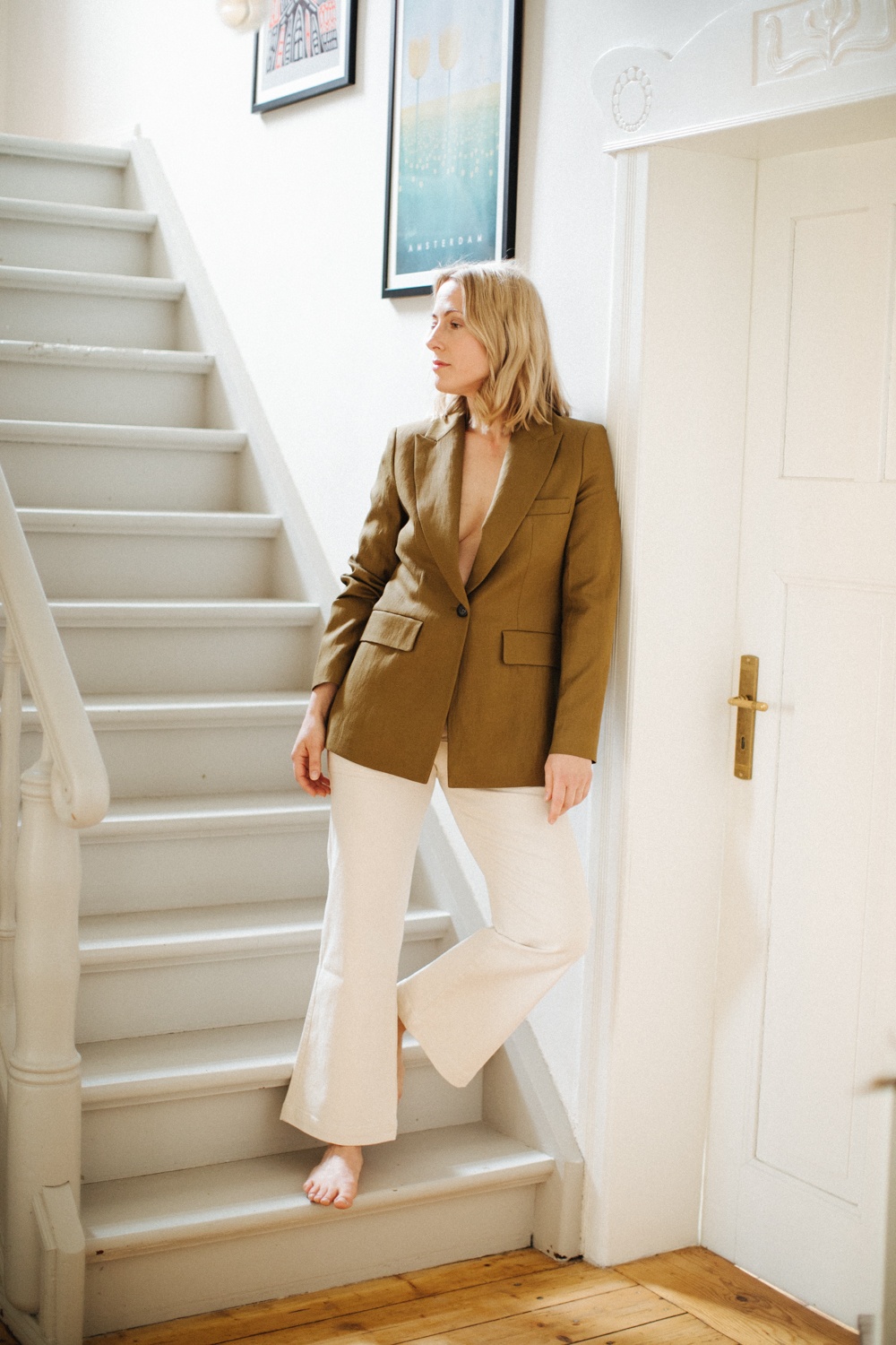 Ich mag Blazer, aber trage sie leider viel zu selten. Liegt es an den fehlenden Anlässen? In Wusterwitz vielleicht schon, auf der anderen Seite wird der Stil der Pariserinnen deswegen so gefeiert, weil sie klassische Kleidungsstücke wie den Blazer lässig mit ihrem Alltagslook verbinden und die formschöne Jacke eben nicht nur bei Businessmeetings tragen. Nach dem Lockdown und zehn Wochen im Homeoffice spüre ich große Lust einen Blazer zu tragen. Jeans, Shorts, Jogginghose, Leggings, Midi- oder Maxirock – eigentlich passt alles dazu. Ohne BH funktioniert für mich nur zuhause, die weiße Jeans mag ich, weil sie die perfekte Länge für den Sommer hat.