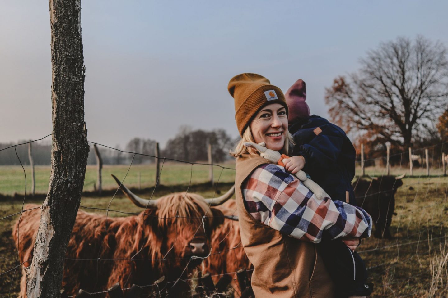 Flori, Vaddern, ich – alle sehen SO aus. Für mich ist es mal wieder eine modische Reise in die Vergangenheit: Mit Anfang 20 habe ich von Carhartt diese angeflauschte Hoodie-Jacke getragen. Jetzt habe ich die Männerabteilung für mich entdeckt. Die Weste ist eine Männergröße M, es gibt geniale Sweatshirts und die Mütze ist sowieso unisex.