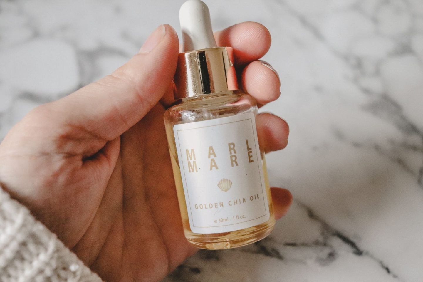• Golden Chia Oil von MarlMare: Mit diesem Produkt gehe ich äußerst sparsam um, so kostbar finde ich es. Wenn ich das Gefühl habe, dass meine Haut mehr Pflege braucht, ergänze ich meine Creme um einen Tropfen Öl. Von Marlene Bescheul, der Gründerin des jungen Naturkosmetik-Unternehmens, habe ich gelernt: Öl muss immer auf die feuchte Haut aufgetragen werden, damit es die Feuchtigkeit in der Haut „einschließt“. Funktioniert wirklich.