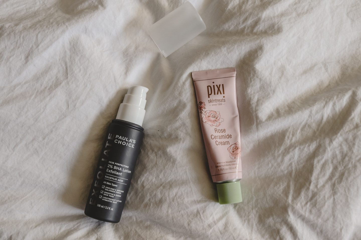 Mit der Skin Perfecting 2% BHA Lotion Peeling von Paula’s Choice versuche ich parallel die Unreinheiten und großen Poren in den Griff zu bekommen. Das funktioniert meiner Meinung nach am besten mit BHA (Salicylsäure), da es die abgestorbene Hautzellen entfernt und die Poren zusammenzieht. Eigentlich wollte ich nach meiner Kooperation mit Paula’s Choice im Sommer 2018 das flüssige Zeug nochmal nachkaufen, aber ich habe mich verklickt. Das wirkt bei mir nämlich noch besser und ist nicht doppelt gemoppelt mit der Tagescreme.