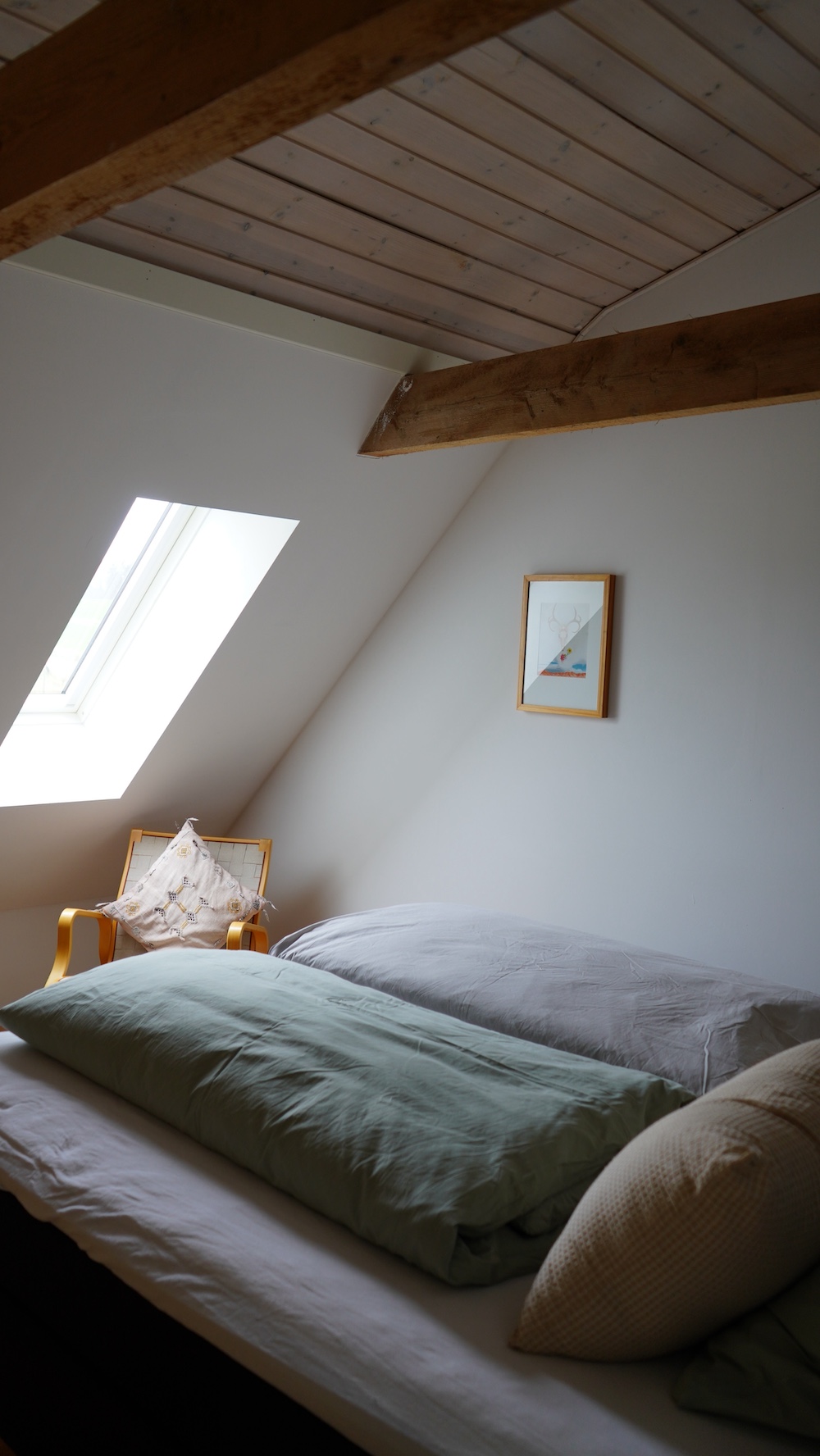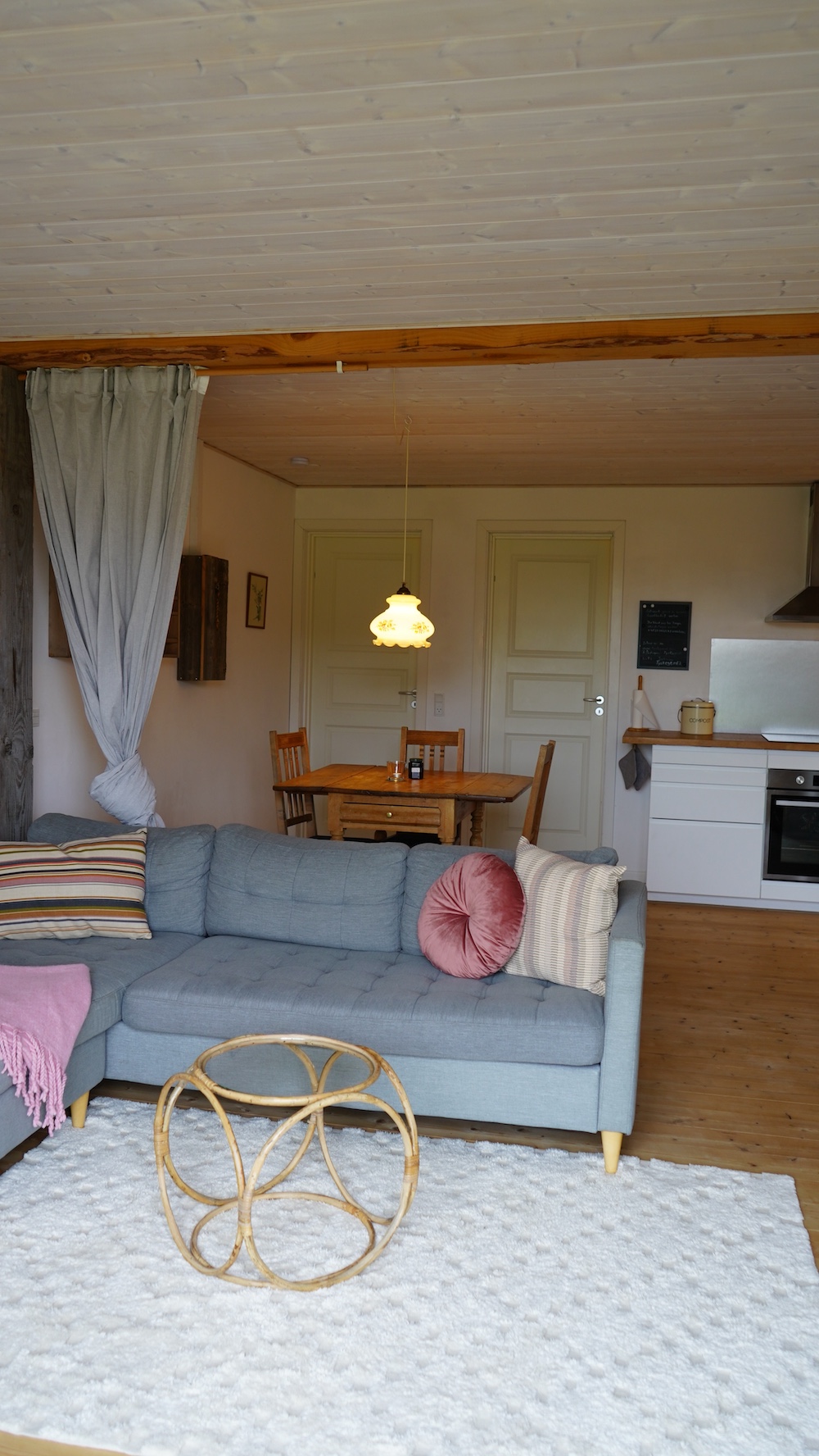 Schon nach der ersten Nacht habe ich zu Flori gesagt, dass ich mich unglaublich wohl und entspannt fühle. Man wacht auf, öffnet das Dachfenster und schaut über die Felder auf die Ostsee. Beim Frühstück auf der Terrasse spazieren die Hühner vorbei, während die Kinder auf dem Trampolin hüpfen. Die Gastgeber sind herzlich und hilfsbereit – von ihnen haben wir die besten Tipps bekommen, was man auf der Insel machen kann und was sich wirklich lohnt.