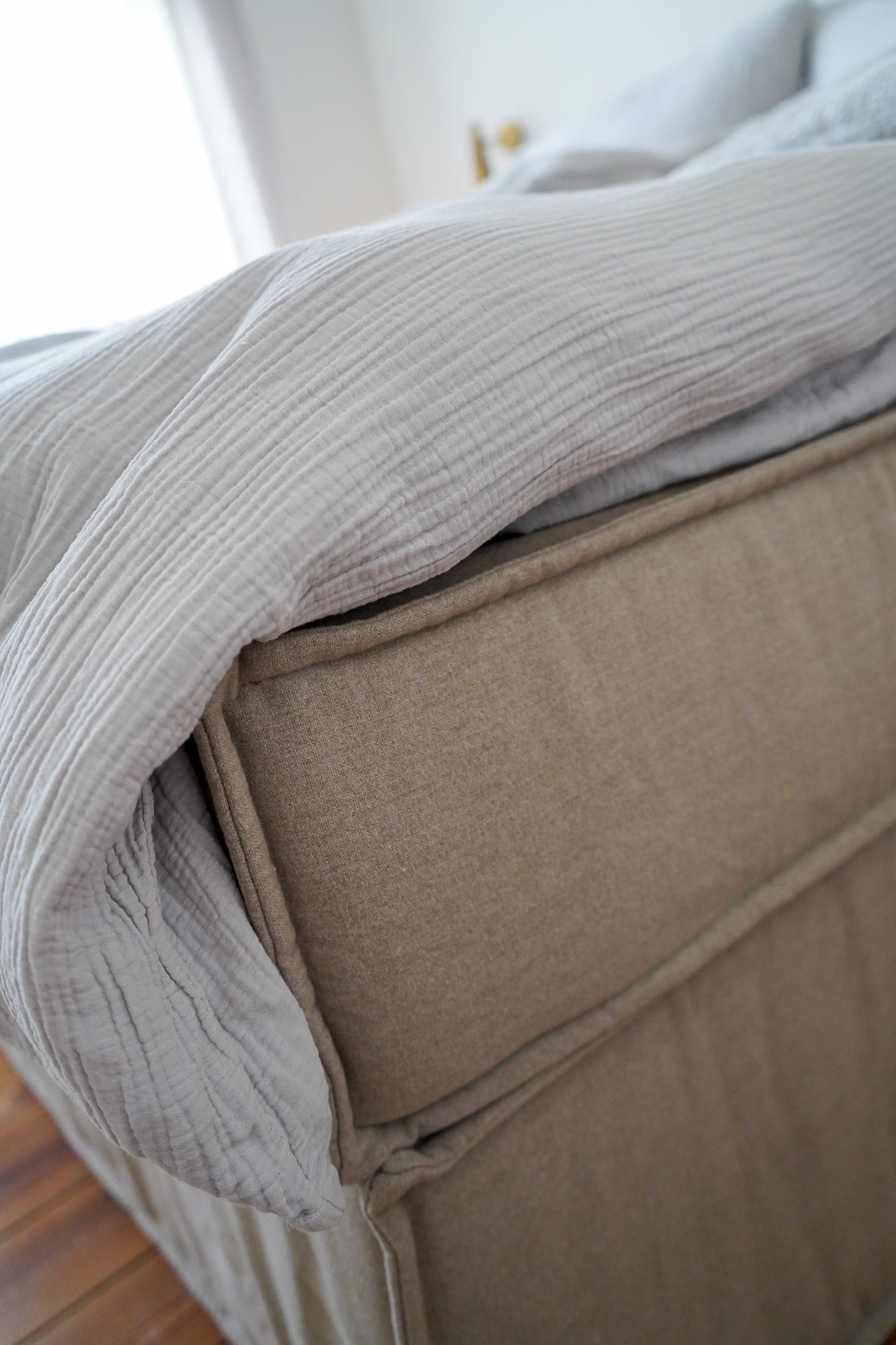 Wir alle sind nicht nur von dem Schlafkomfort begeistert, sondern auch von dem easy Aufbau. Kein komplizierter Bausatz mit tausend Einzelteilen, bei dem man die Nerven verliert und anfängt zu streiten, sondern lediglich ein paar große Pakete. Die Unterteile werden zack zusammengeschoben, Matratzen kommen darauf und dann kann man das Bett schon beziehen. Unsere Maße: 180 x 200 cm, Stoff: „Kinx Beige“, Härtegrad H2, mit Kopfteil 100 cm.