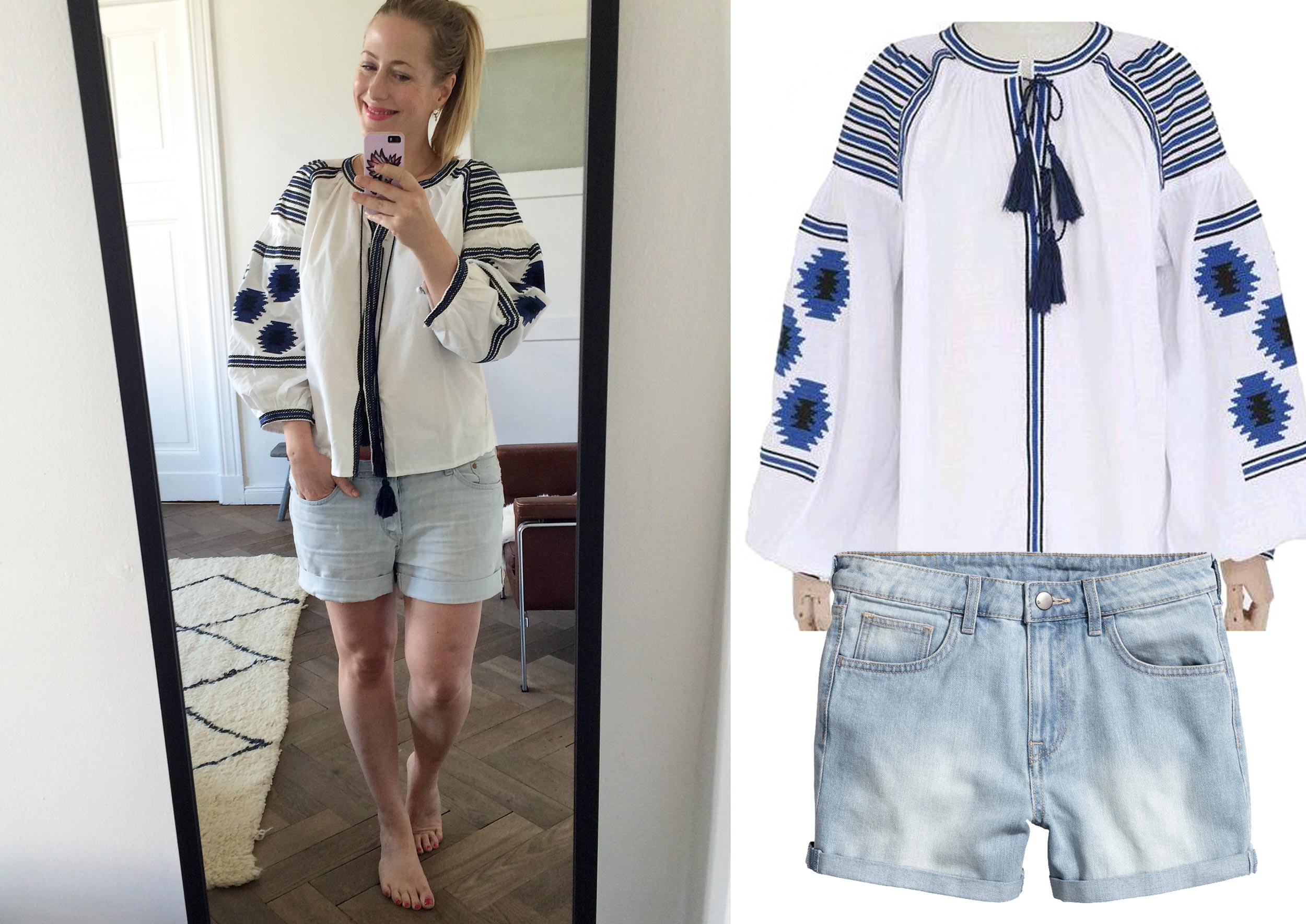 Bluse: Les Jumelles (Sale) || Shorts: H&M || Farbe auf den Lippen: Catrice Supreme Fusion in 040 „Tie The Apri-Knot“