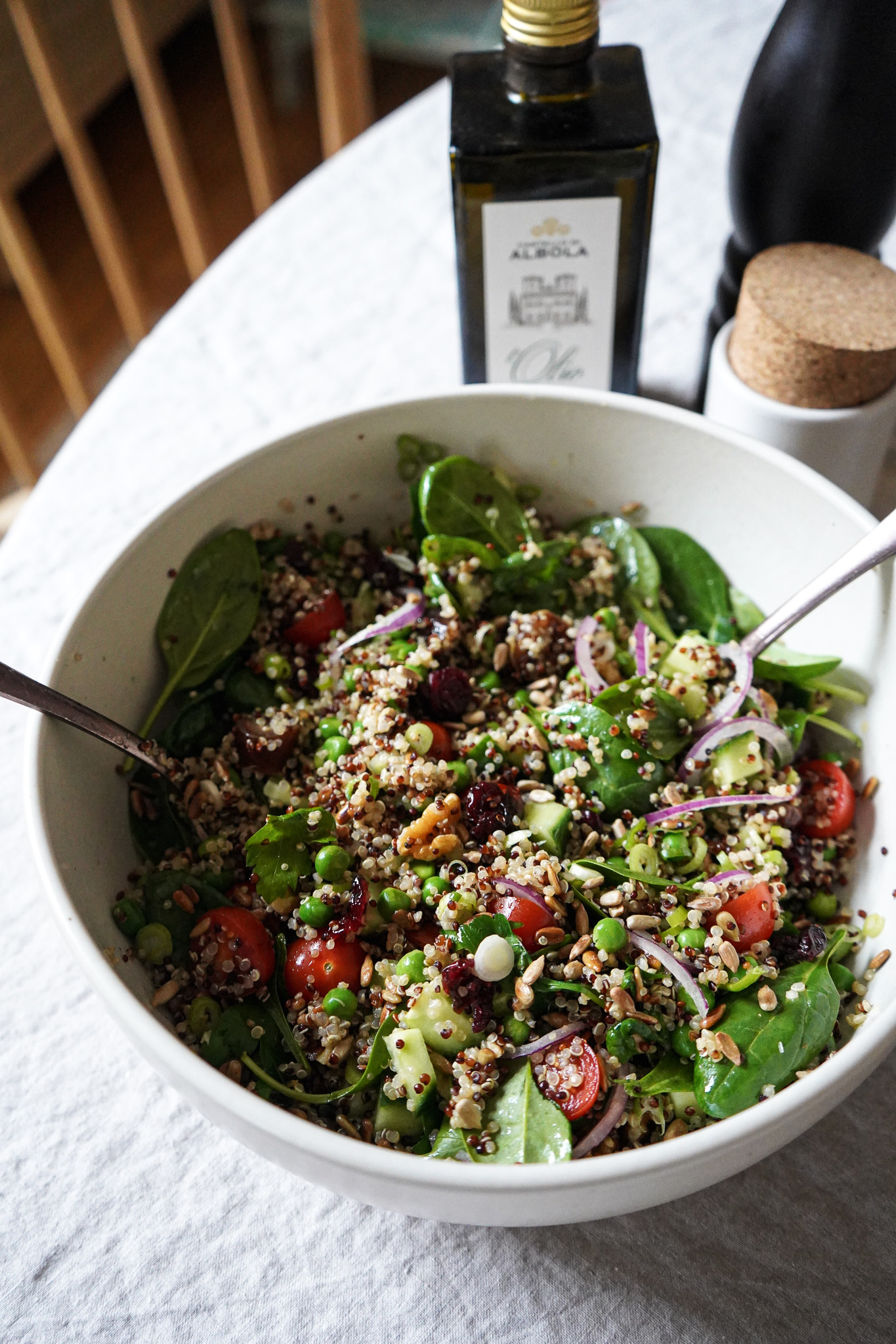 Schöner Weihnachtssalat mit Quinoa, Datteln und Sonnenblumenkernen