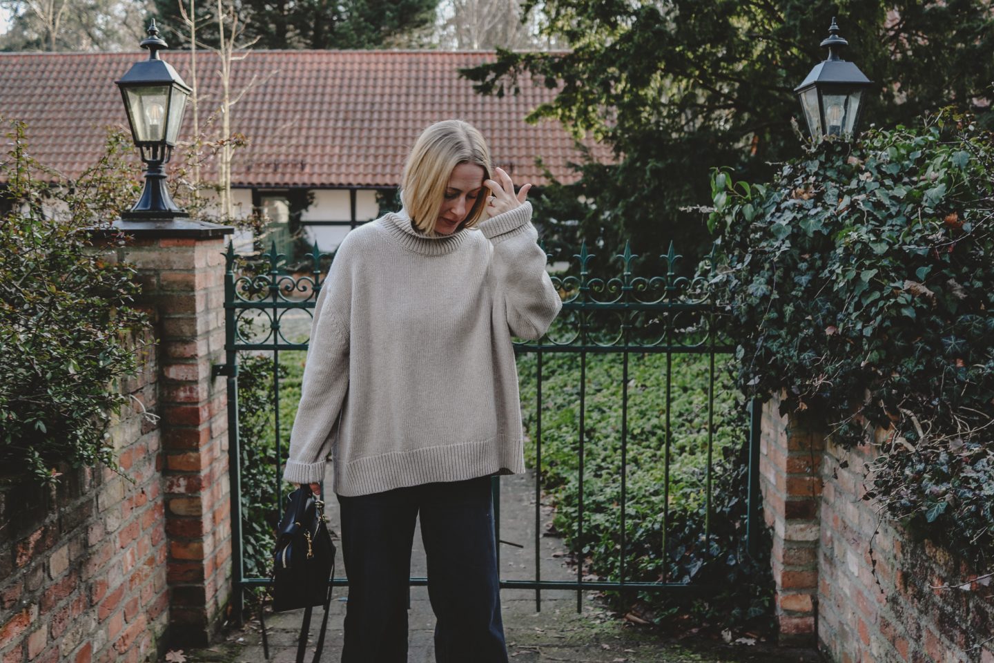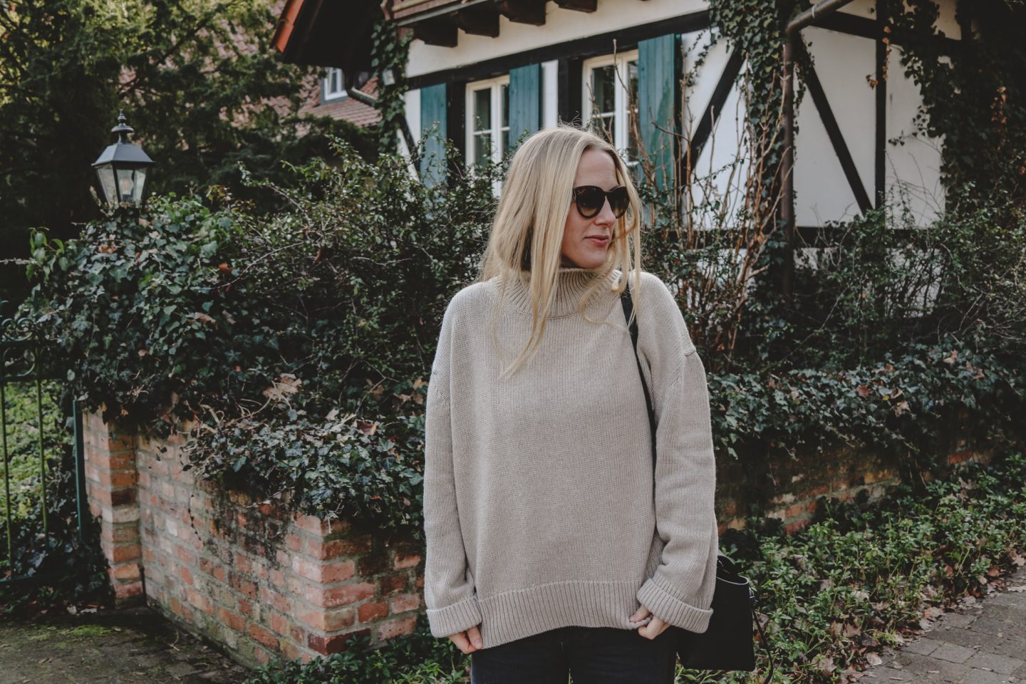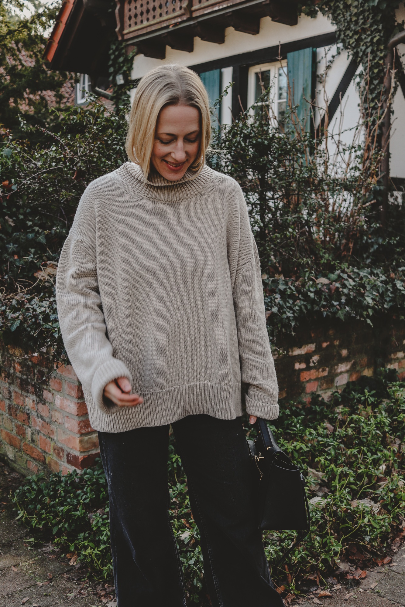 Typisch sind der Rollkragen, kastige Oversize-Schnitt und überlangen Ärmel. Zweifelsohne handelt es sich dabei um einen zeitlosen Klassiker, aber in dieser Preisliga können die meisten Frauen nicht mitspielen, ich sowieso nicht. Gut, dass uns in diesem Winter überall Dupes in den Onlineshops begegnen.