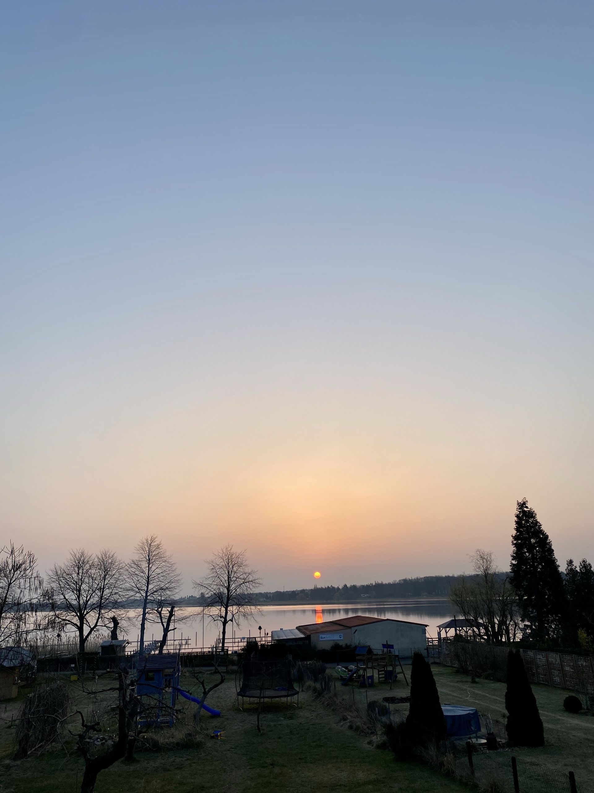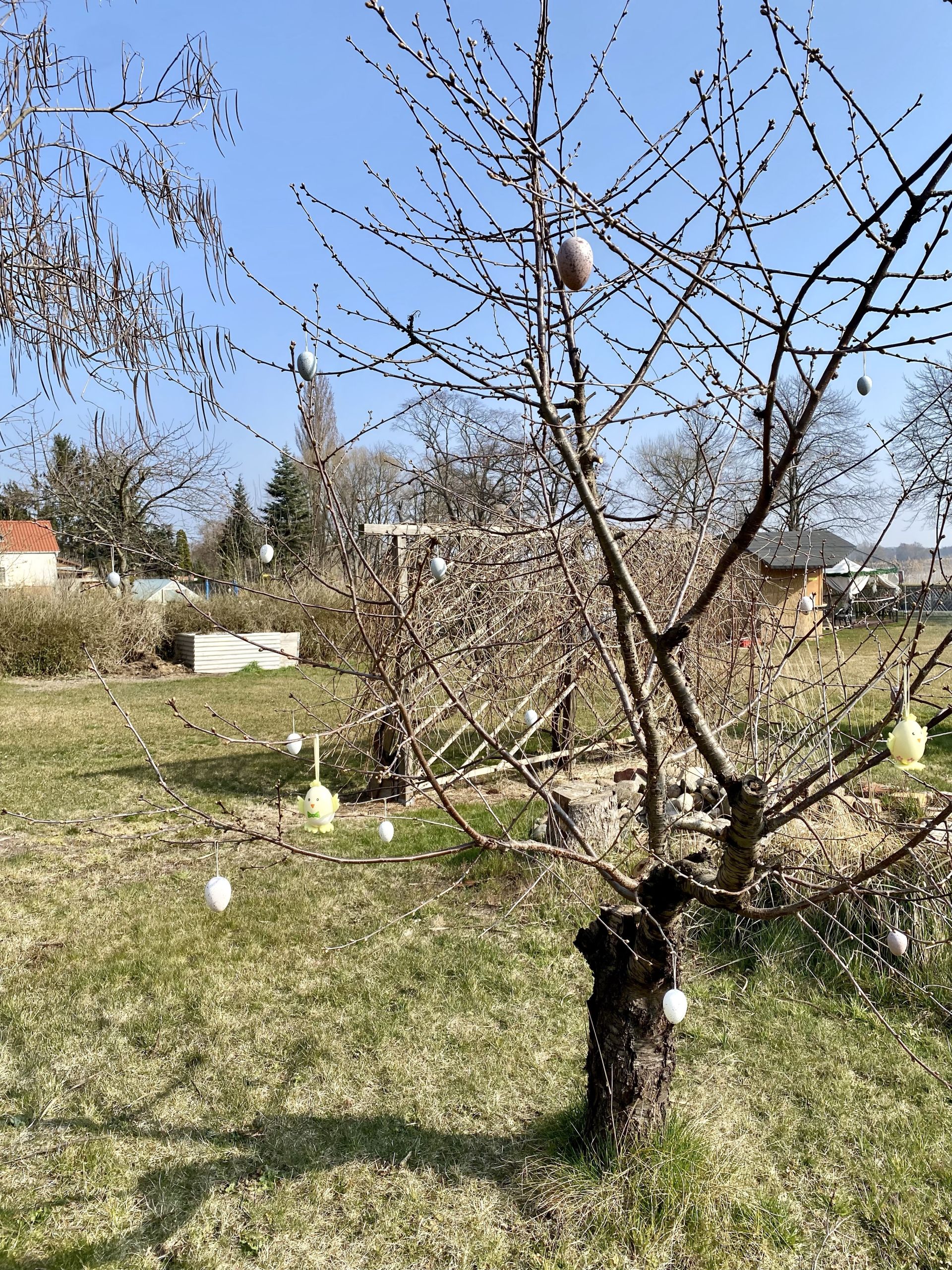 Ich habe mir Ruhe gegönnt und meine Erschöpfung ausnahmsweise mal nicht ignoriert, obwohl wir Mütter darin sehr geübt sind. So habe ich das Nachthemd wiederentdeckt, Zeit für Sonnenaufgänge, Schnittchen und die Osterdeko im Garten. Eier am Baum sind nämlich hier ein Muss.