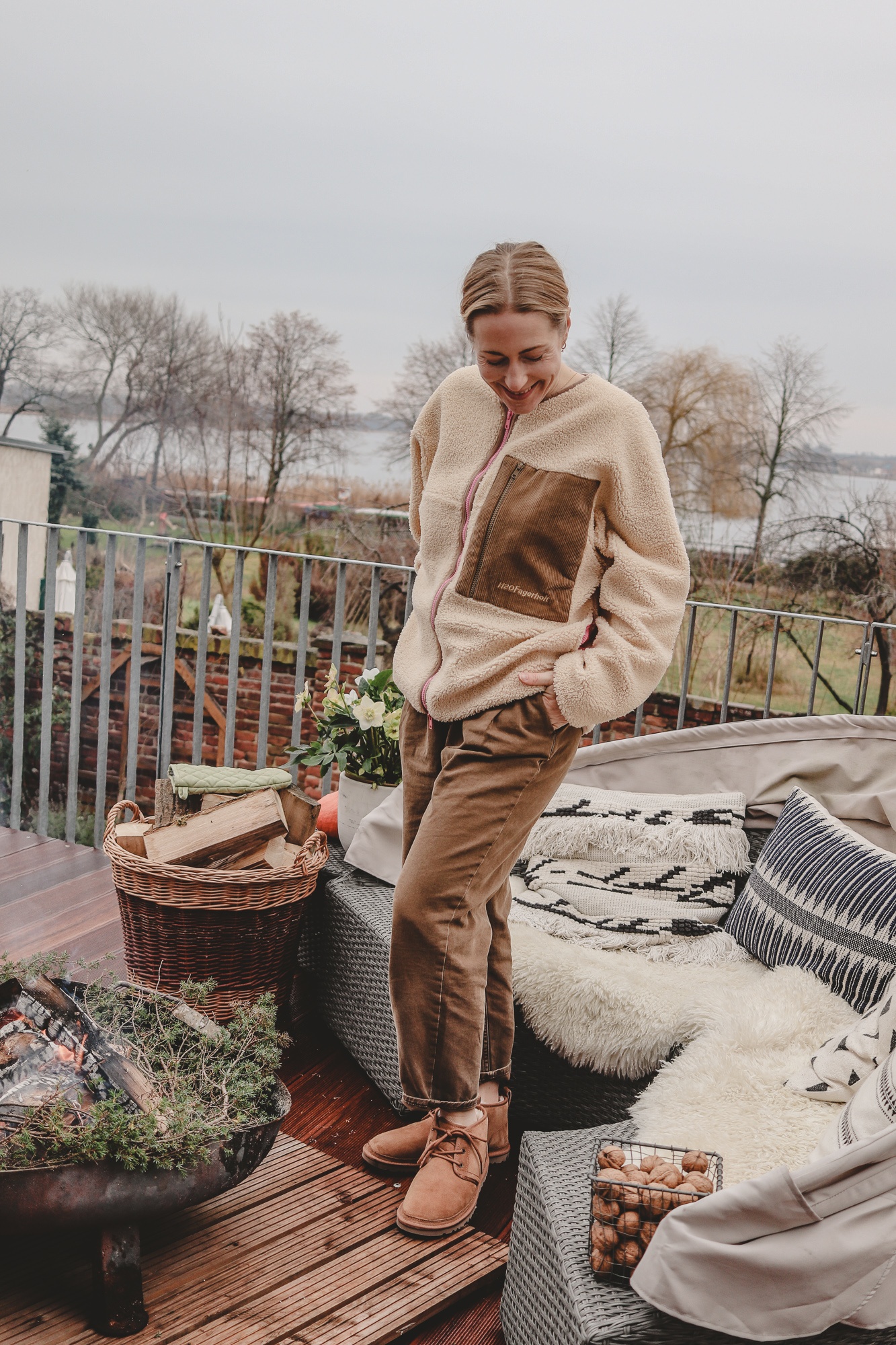 Auf unserer Terrasse genießt man im Winter fast so etwas wie einen Meerblick, denn die kahlen Bäume geben einen Panorama-Blick auf den Großen Wusterwitzer See frei. So ein Nachmittag mit Feuer, Äpfeln und Seifenblasen ist besser als jedes Fernsehprogramm und wir feiern unsere Entscheidung, aufs Land zu ziehen, einmal mehr. Die kalte, frische Luft tut einfach gut. Klar, dass es dabei immer schön warm bleiben muss, vor allem an den Füßen.