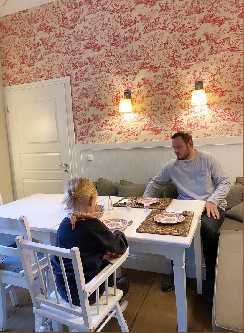 Die Fahrt nach Dänemark war für eine Etappe mit Kleinkind zu lang, weshalb wir einen Stopover in dem charmanten Bed & Breakfast Gutshaus Volzrade (*Link) in Mecklenburg-Vorpommern eingelegt haben. Das Haus ist sehr groß und längst nicht fertig renoviert, was für uns als Hausbesitzer besonders spannend war, denn die Qualität der Renovierung ist beeindruckend. Das Familienzimmer war schön groß, die Cocomat-Betten hervorragend und Elisabeths plastikfreies Frühstück am nächsten Morgen das absolute Highlight, ebenso wie die gemütliche Bibliothek und der Garten mit Labyrinth und Laufenten. Tipps für abends: das Vielanker Brauhaus (*Link), ca. 10 Minuten mit dem Auto entfernt.