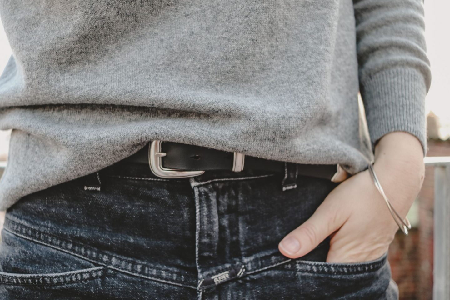 Ich mag wie bereits erwähnt euren grauen Pullover und den schwarzen Ledergürtel sehr. Was hat dich jeweils beim Design inspiriert?