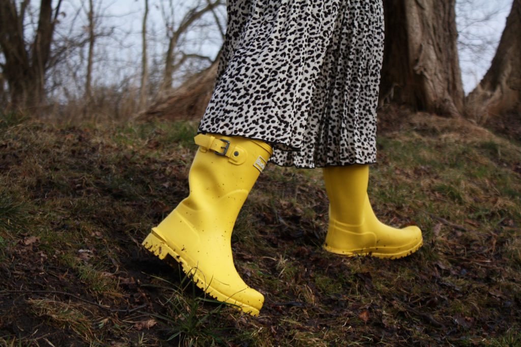 Ashby Midas Jacke, gelbe Jacke siehe oben, olivgrüne Gummistiefel Bede