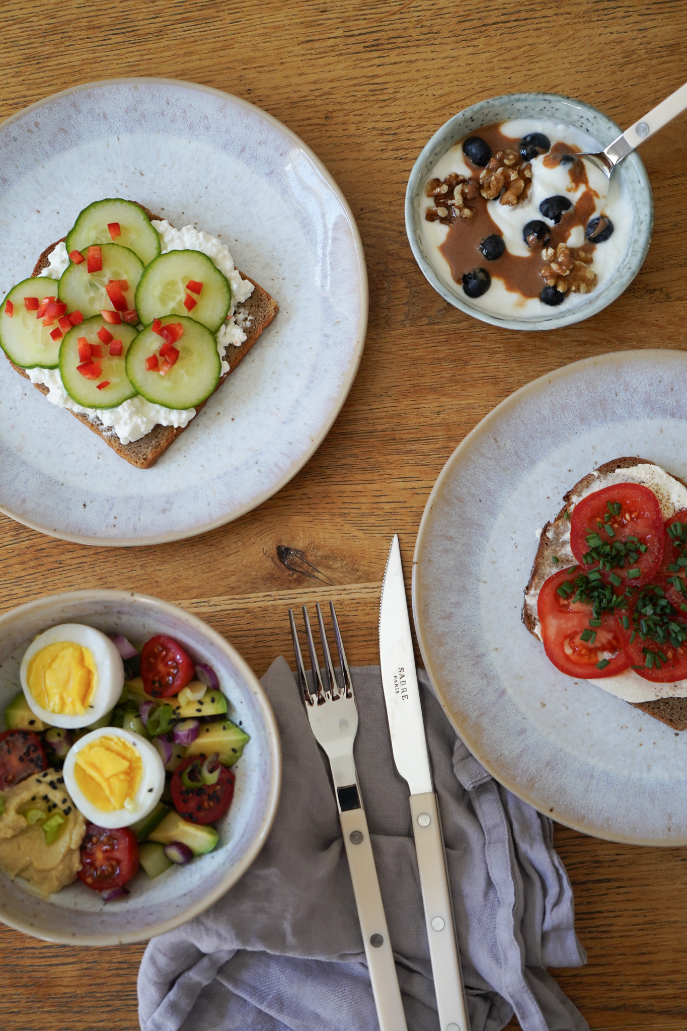 Herzhaftes oder glukosefreundliches Frühstück, um gleich mit einem stabilen Blutzucker in den Tag zu starten. Also KEIN Müsli, Obstschale oder Acai-Bowl, weil sie Zuckerbomben sind.