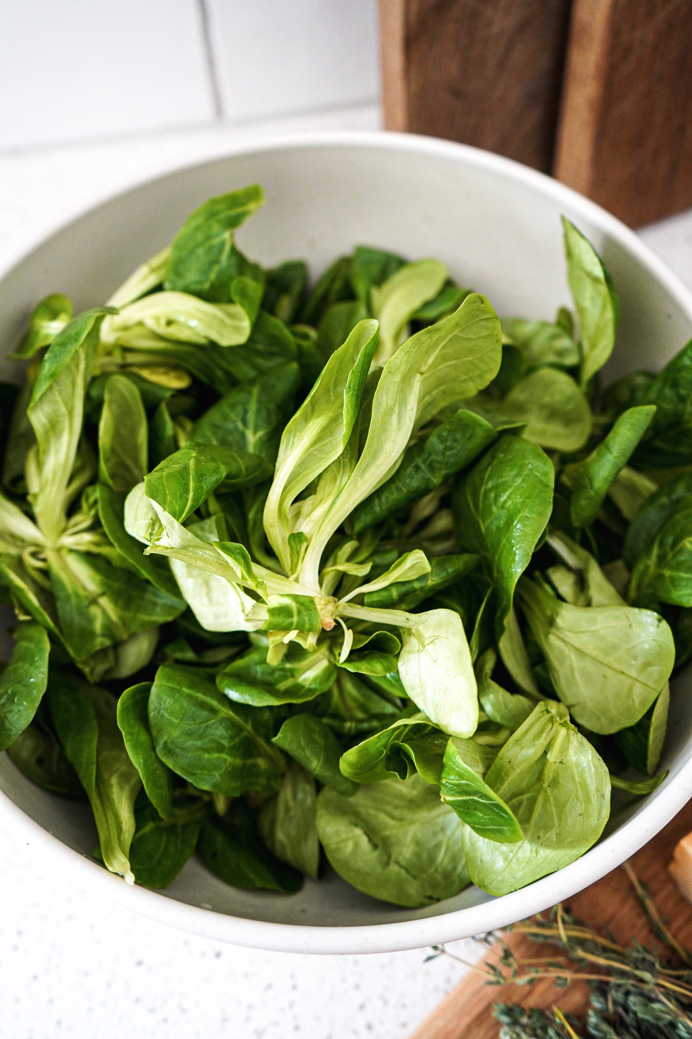 Vielen Dank für dieses Rezept. So einfach, aber wäre ich nie drauf gekommen. Habe ich gestern mit Rucola statt Feldsalat gemacht und ein paar Oliven waren auch noch im Kühlschrank, mmmhhh war das lecker. Liebe deine schönen Salate!