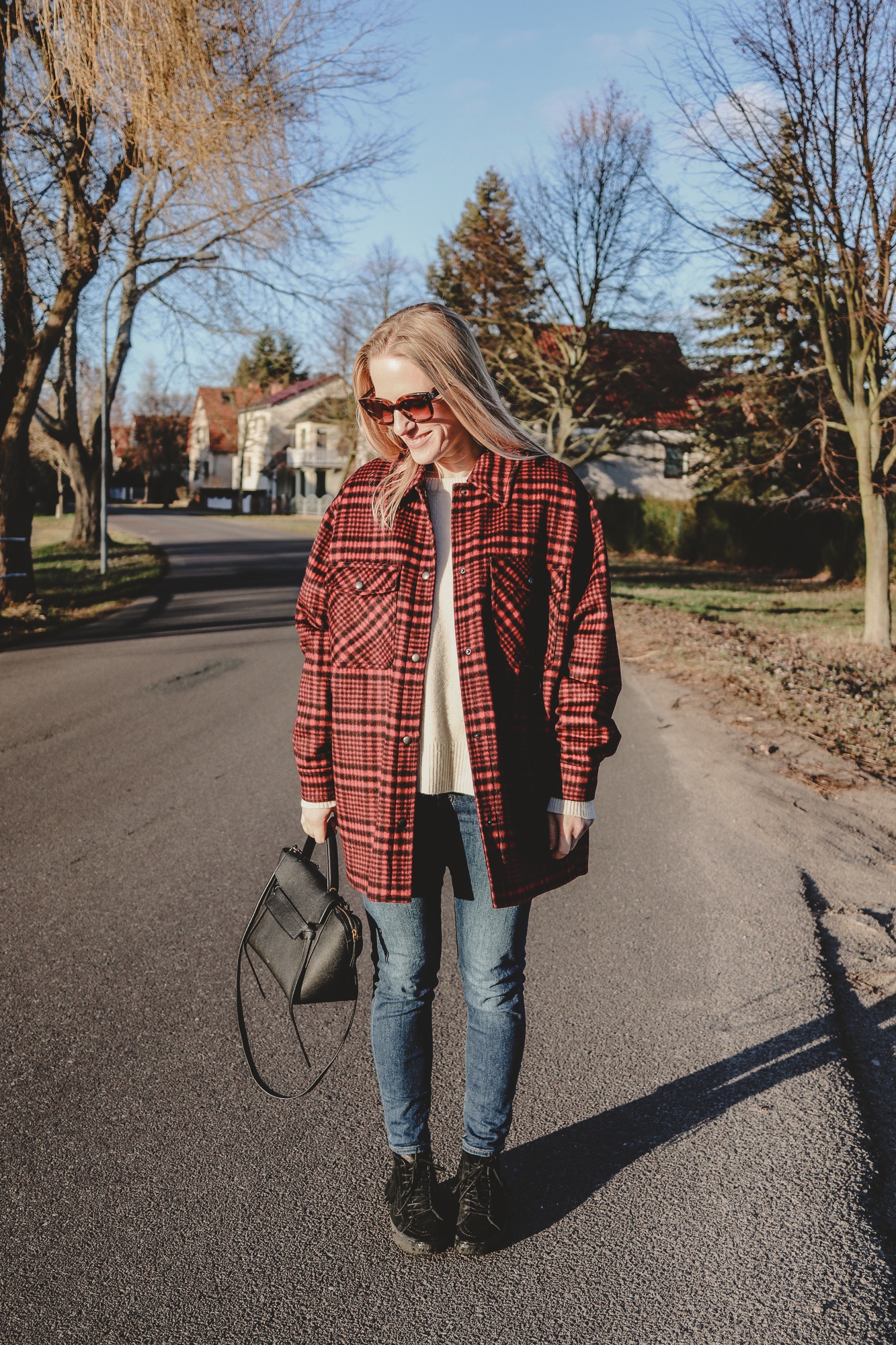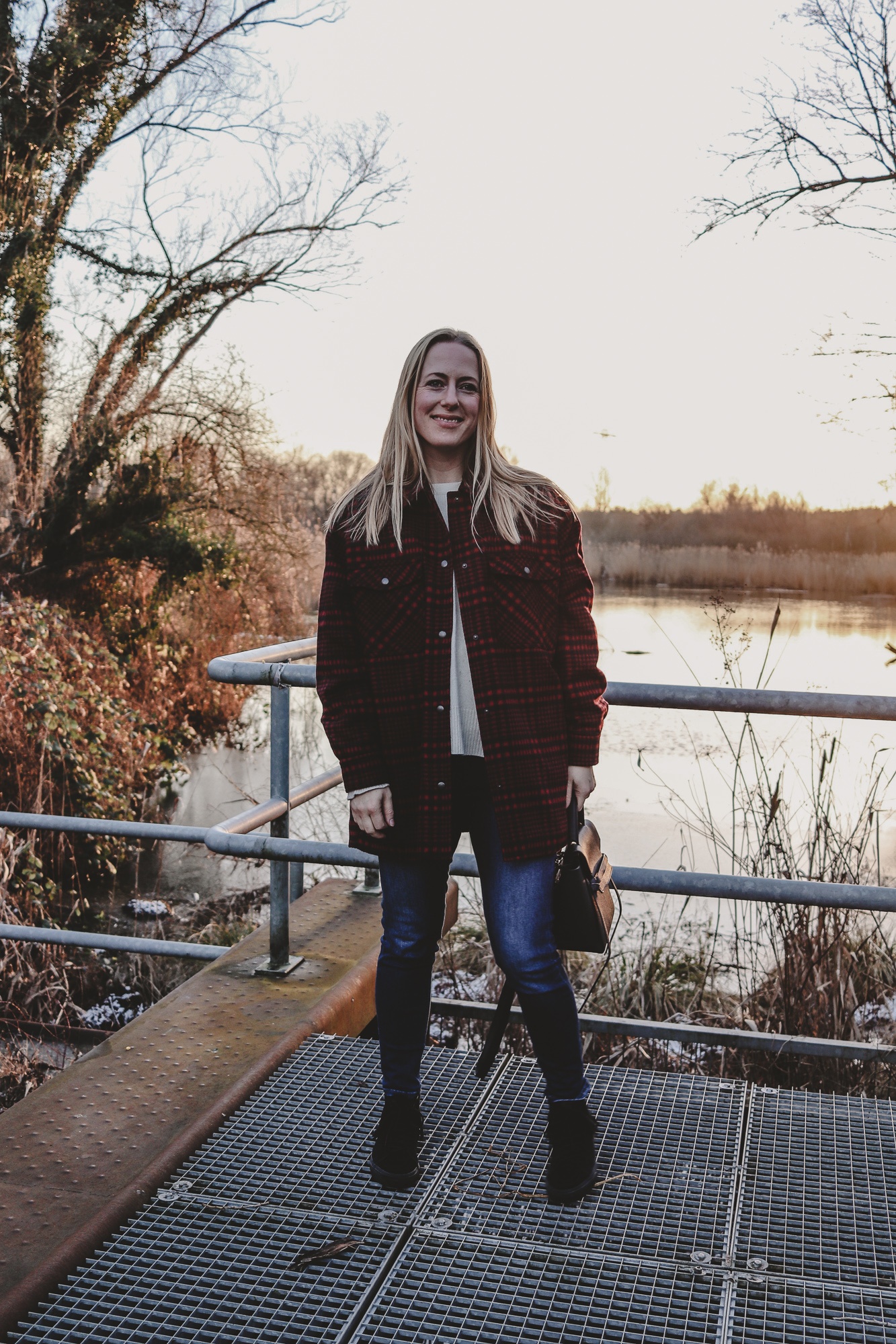 Overshirt: & Other Stories (ich trage Größe 40; fällt groß aus), Jeans: Acne Studios, Pullover: Oats Cashmere, schwarze Wildleder Schuhe: Vans, Sonnenbrille und Tasche: Céline