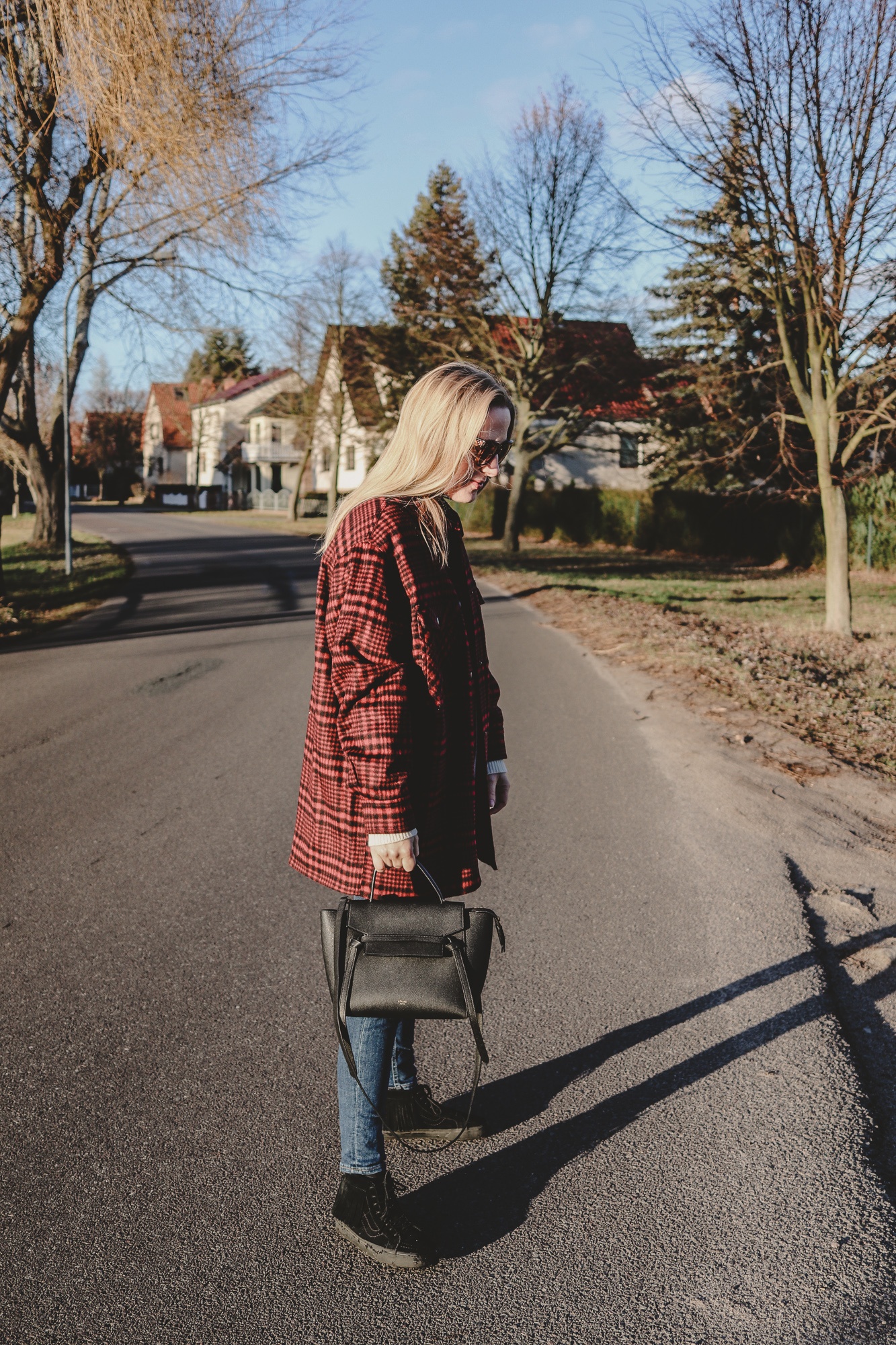 Nicht nur Männer, die Gefühle zeigen können, sondern auch Karos und Oversize sind die Traum-Kombi schlechthin für jede Schlunz- und Schnulz-Liebhaberin wie mich. Doch während das Overshirt früher meine Baggy-Jeans vervollständigte, trage ich es jetzt „erwachsen“ zu schmalen Buxen und meiner neuen old Céline Tasche, die ich euch bereits hier vorgestellt habe. Zwischendurch werfe ich mir die Jacke über, um mit Isi eine welpenfreundliche Runde durch den Garten zu drehen.