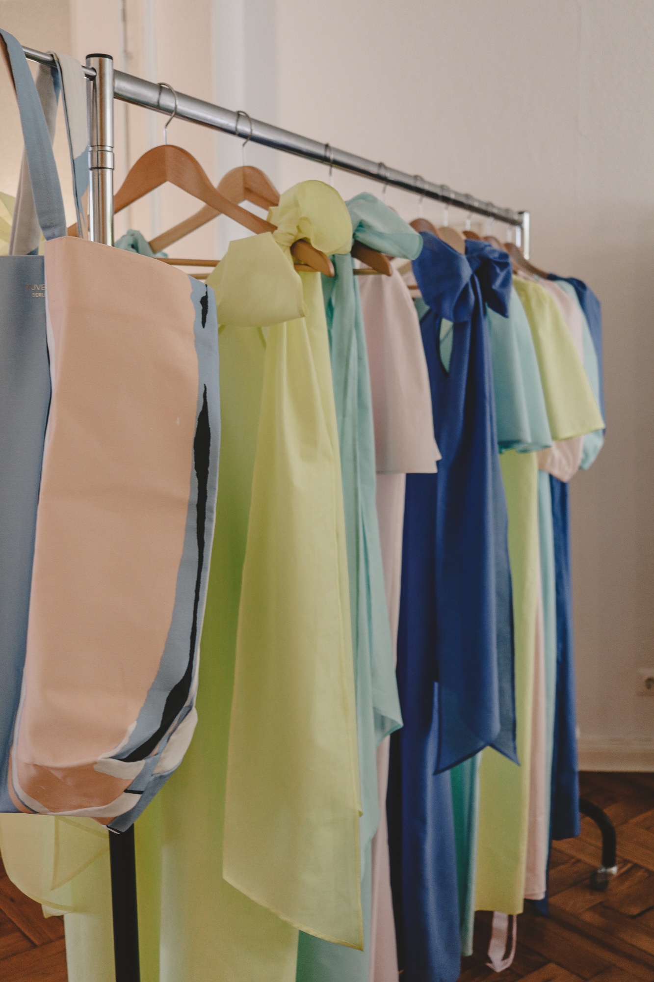 Wie gut, dass dieses Label NOCH ein Geheimtipp ist, denn was da auf den Stangen hing, versetzte mich sofort in einen Glücksrausch: Raffinierte Strandkleider in fröhlichen, sommerlichen Farben wie „Rose“, „Aqua“ oder „Citronat“, ergänzt durch feminine Details wie Schleifen, Puffärmel oder Bindegürtel. Ich wollte sofort alles anprobieren!
