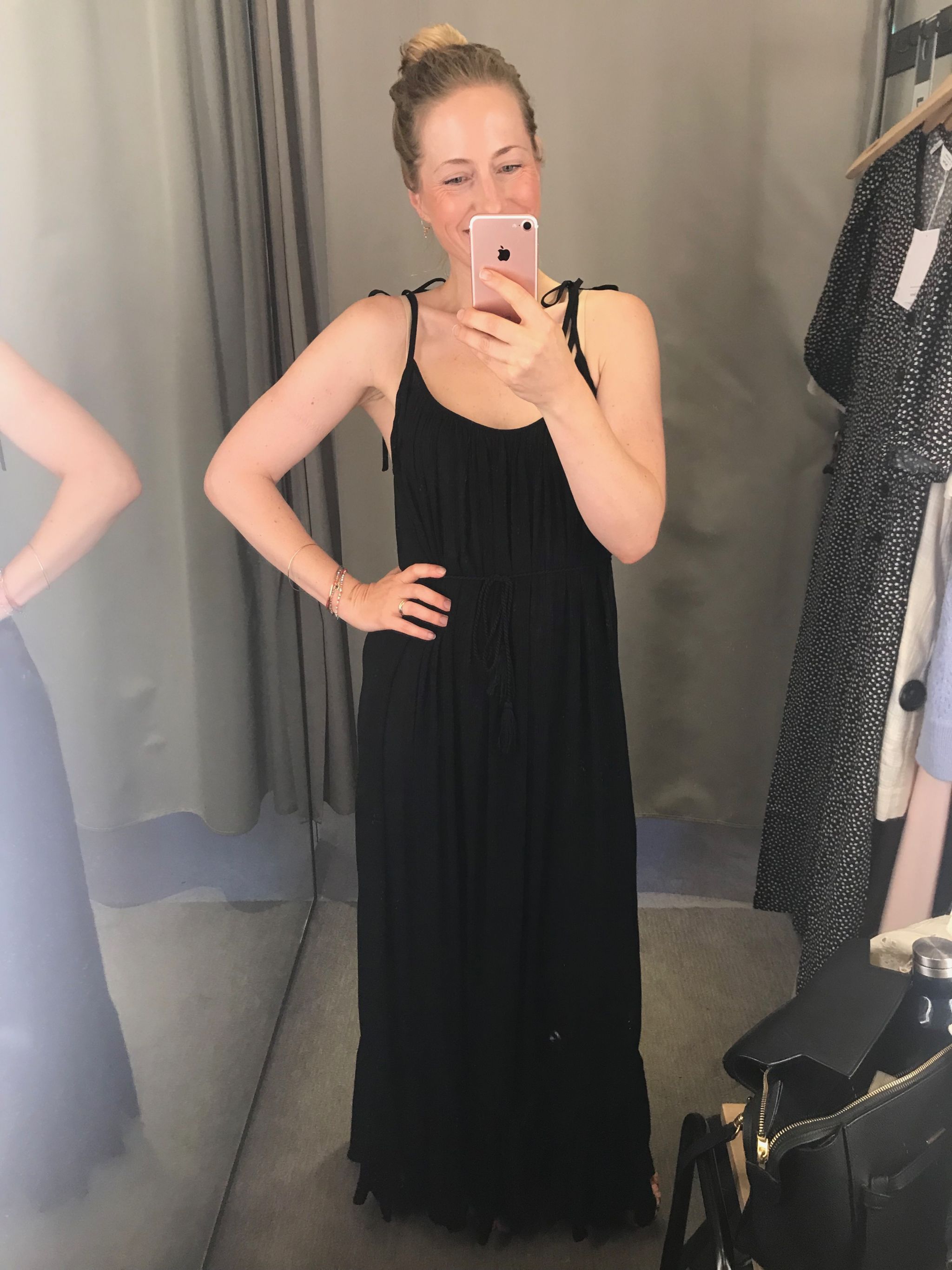 Gekauft habe ich das schwarze Maxikleid mit Spaghetti-Trägern und Kordel. Genau so eins habe ich mir immer gewünscht. Es liegt schon in meinem Koffer!