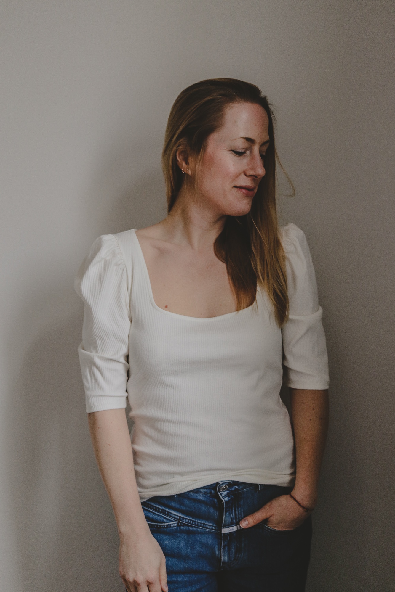 Das gerippte Jerseyshirt mit dem eckigen Ausschnitt und den Puffärmeln von H&M ist so besonders wie eine Bluse, aber lässt sich am nächsten Tag unkompliziert in die Waschmaschine stecken. Deshalb habe ich es mir auch noch in Rot gekauft.