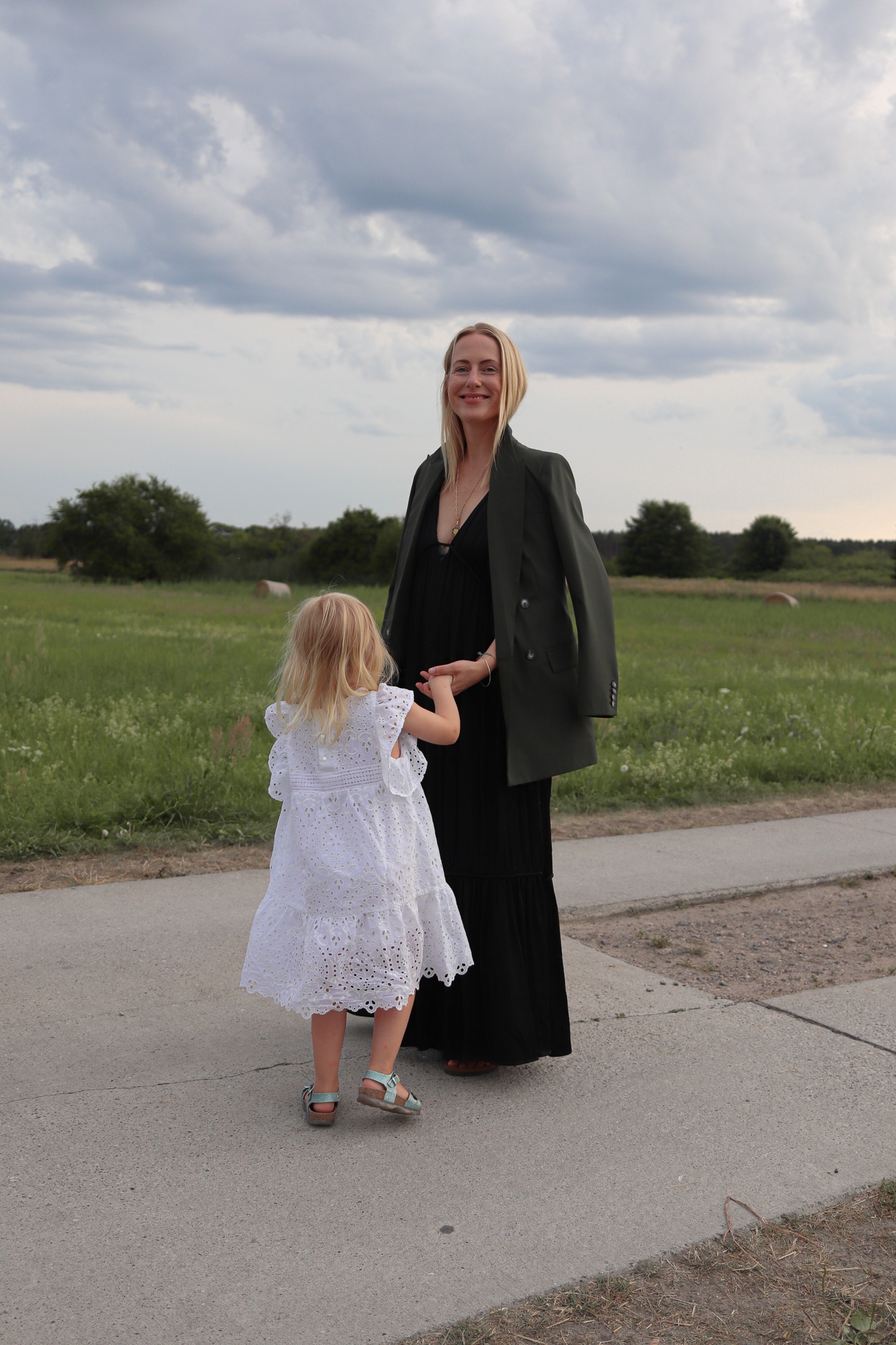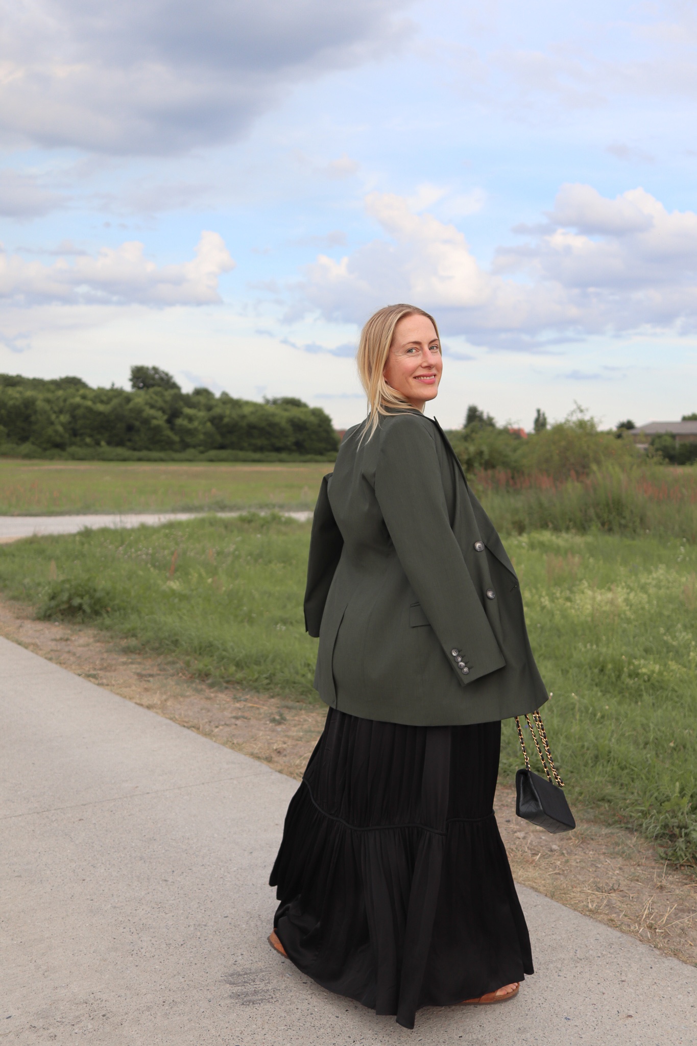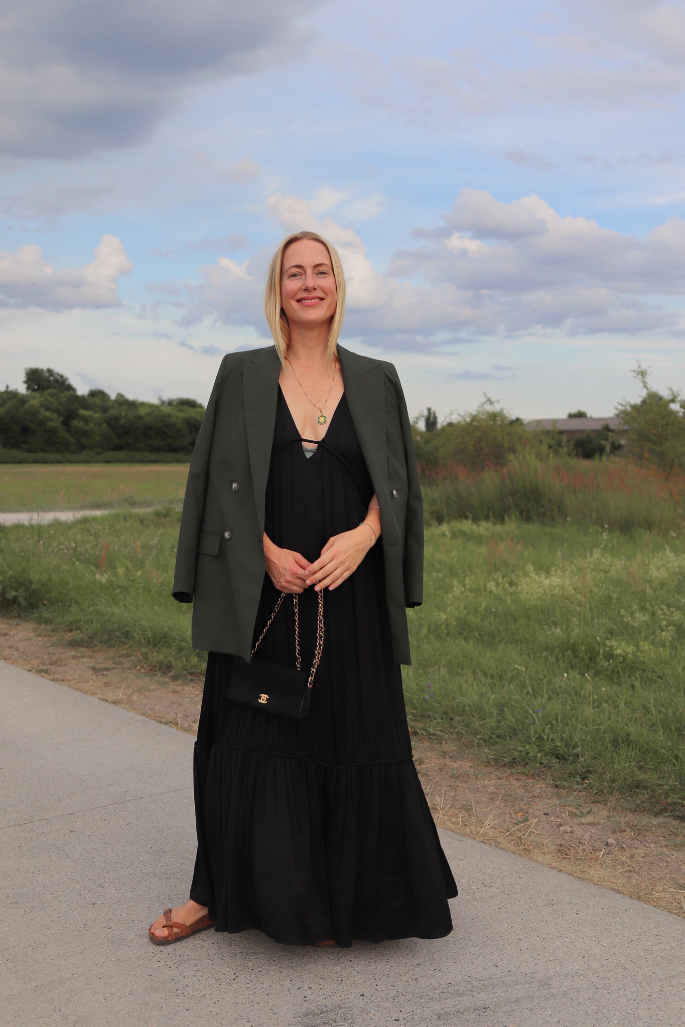 Und zum wallenden Maxikleid? Erst recht! Da fühlt man sich dann ein wenig wie Frances McDormand bei den Oscars… nur mit dem kleinen Unterschied, dass ich nicht auf einer Bühne, sondern vor einer Ponyweide Brandenburg stehe.