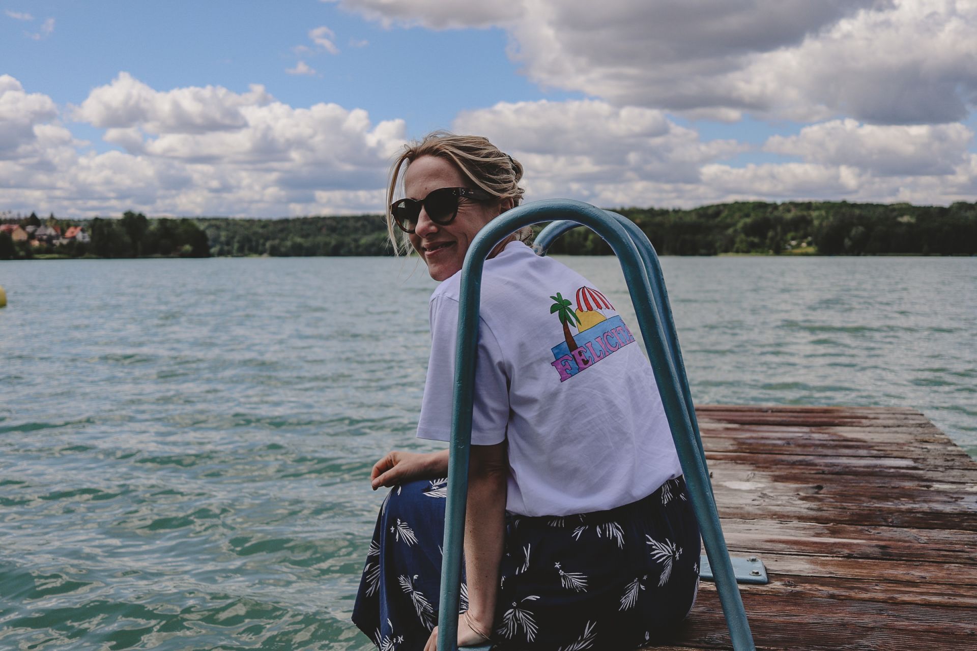 Weil das Wetter an diesem Tag so herrlich war, haben wir uns spontan entschieden nicht nur auf einem Feld wilde Blumen zu pflücken, sondern noch einen Schlenker zu machen. Wir schauten nachmittags bei meiner Freundin, der Designerin und Illustratorin Melanie Petersen, in Buckow vorbei. Ein Muss: der Besuch im Strandbad – inklusive Pommes mit Ketchup, denn die gehören für uns zu dem Gefühl von Sommerferien dazu. Das türkise Wasser des Sees mutet karibisch an, aber nicht nur deshalb lohnt sich ein Ausflug in den Kneippkurort in der Märkischen Schweiz.