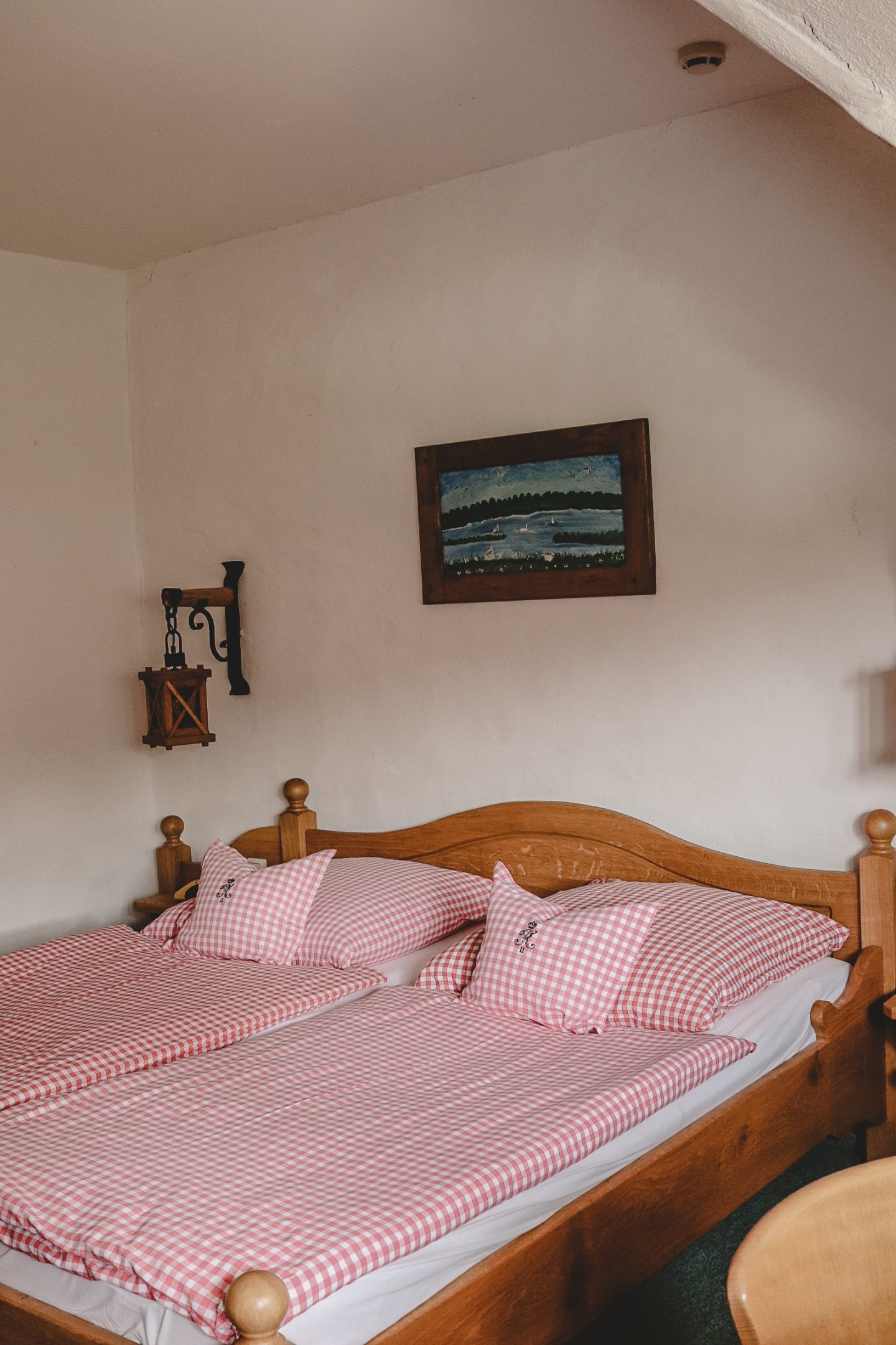 Die Familie Dunkel betreibt den Gasthof seit 30 Jahren und bietet nicht nur eine leckere, weil frische Küche mit Wild und Fisch aus der Region, sondern eine schnuckelige Pension, so wie man sie sich auf dem Land vorstellt: mit rustikalen Holzmöbeln und rot-weiß-karierten Bettbezügen. Der Hausherr ist eine coole Socke und ausgewiesener Tierfreund und so fanden wir hinter dem Haus große Weiden mit Eseln, Ponys, Lamas und Schafen. Perfekt für Kinder! Der MINI Clubman konnte währenddessen auf den Feldwegen und Kopfsteinpflaster seine Sportlichkeit unter Beweis stellen.