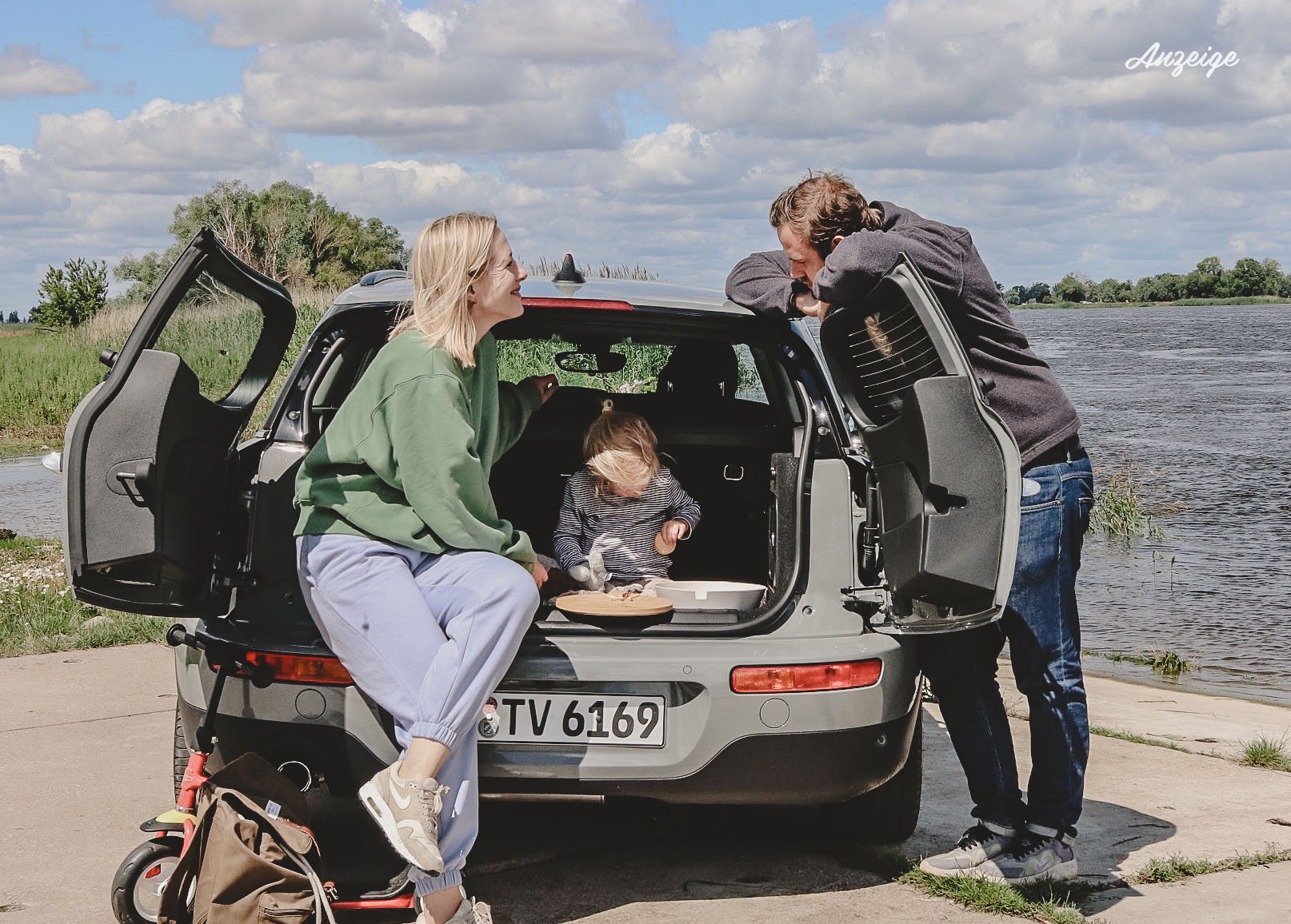 Los ging’s am Freitagnachmittag. Meine Tochter und ich haben Papa bei der Arbeit im Co-Working Space Factory Berlin (Lohmühlenstraße 65 12435 Berlin) abgeholt. Wie das bei Selbstständigen und Gewebetreibenden immer so ist, musste vor der Abfahrt natürlich „noch schnell“ etwas erledigt werden: Florian war mit dem MINI Clubman vorher beim Großmarkt und wollte Gemüsekisten verräumen, ich einen Artikel korrigieren und einen Instagram-Post machen.