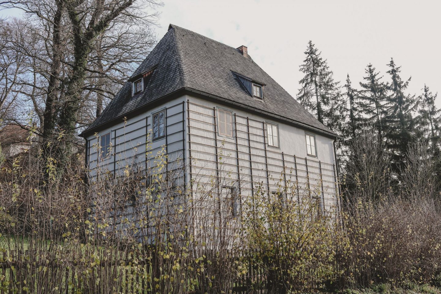 Nach einer Stadtführung (der „Große Stadtrundgang“ startet täglich um 10 und 14 Uhr vor der Touristen-Information Weimar und kostet pro Person 8 €) sind wir auf eigene Faust durch den Ilmpark gewandert und haben uns sowohl Goethes Gartenhaus als auch die oberhalb gelegenen Villen „Am Horn“ anschaut.