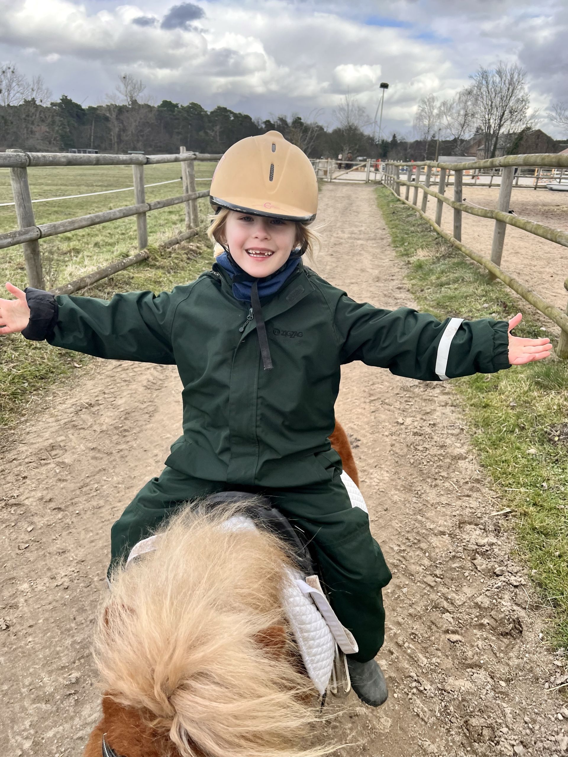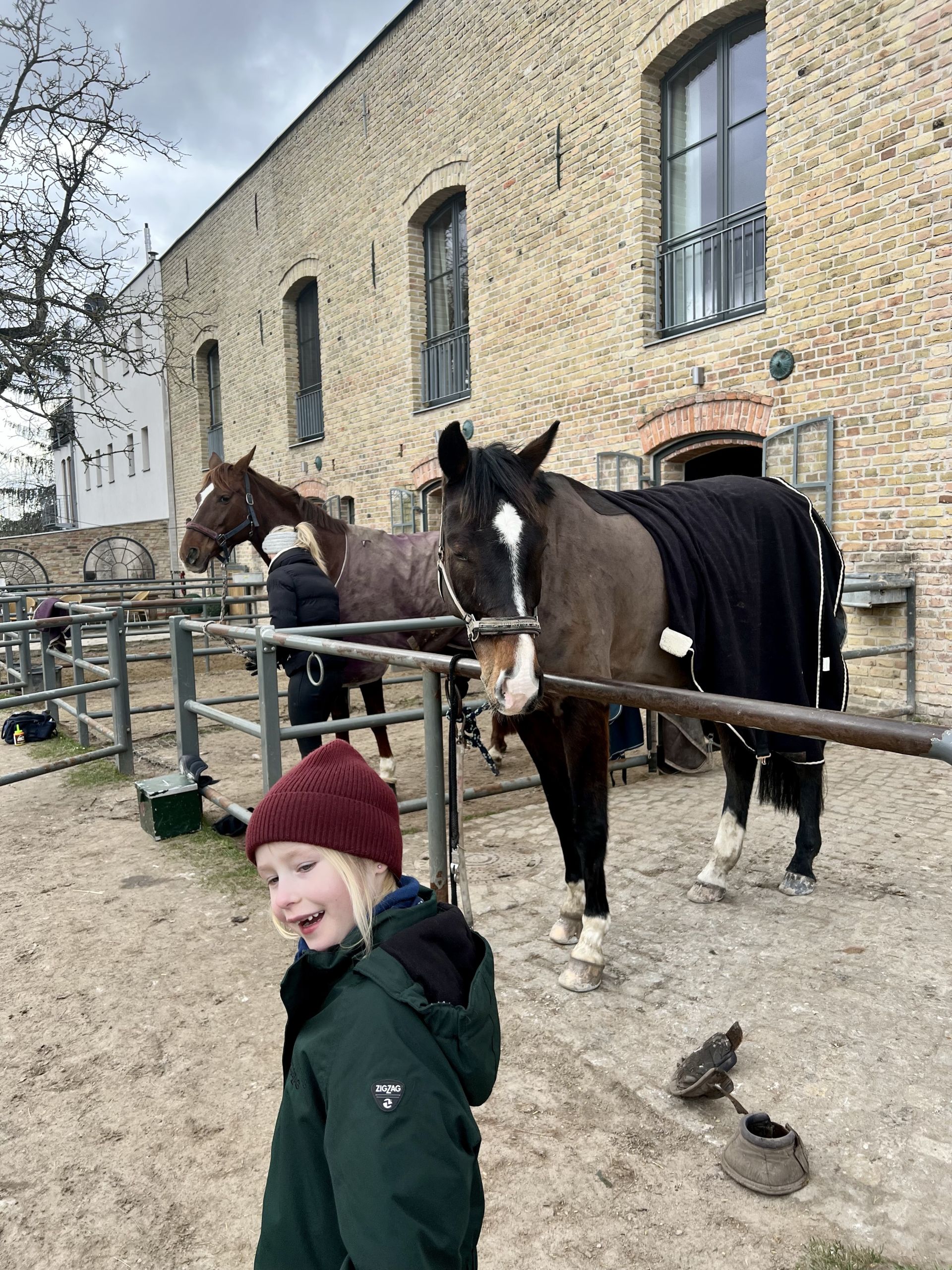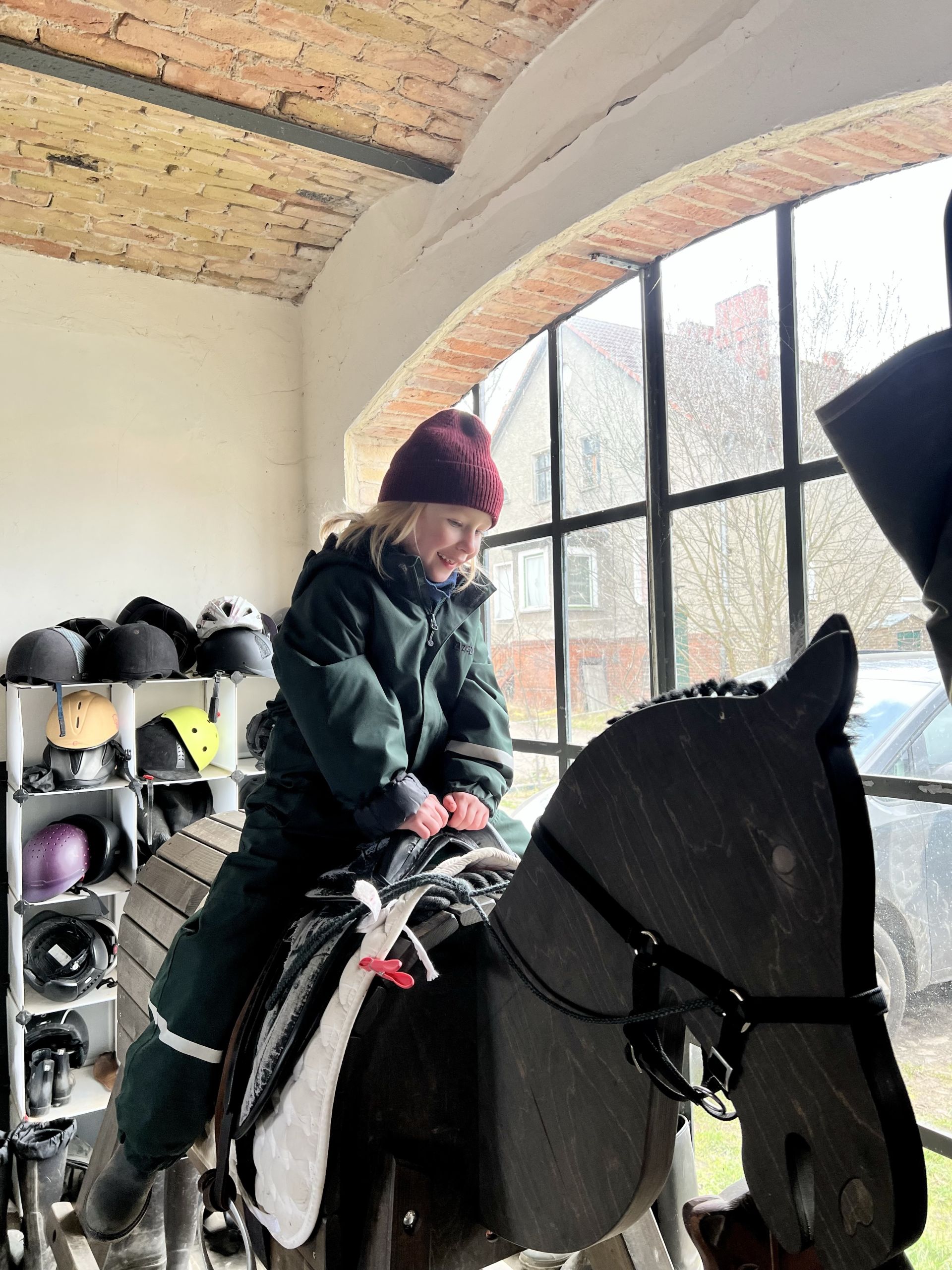 Für erwachsene Reiter*innen gilt: Bitte Schuhe mit Absatz tragen (keine flachen Sohlen oder Sneaker), bequeme Hosen anziehen und nicht, so wie ich, eine enge Jeans. Handschuhe aus Leder machen im Winter auf jeden Fall Sinn, da die Fingerchen schnell kalt werden.