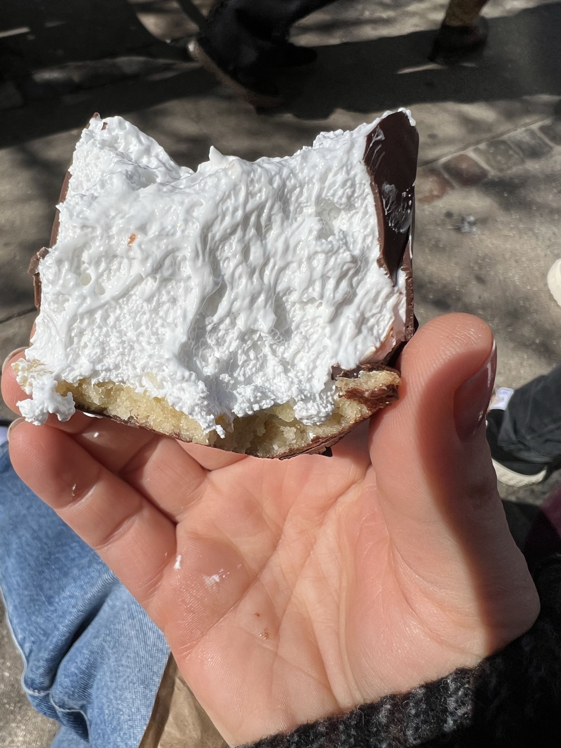- Auf meiner Liste stand außerdem Flødebolle essen, nachdem mir meine Freundin Marlene den Ersten spendiert hat. Die Schaumküsse haben in Dänemark einen Boden aus Marzipan. Göttlich, das wäre meine Henkersmahlzeit. Der bei Lagkagehuset war ausgezeichnet, aber auch echt groß. In anderen Bäckereien oder Konditoreien gibt es eine Nummer kleiner, die man schön wegschnabulieren kann.