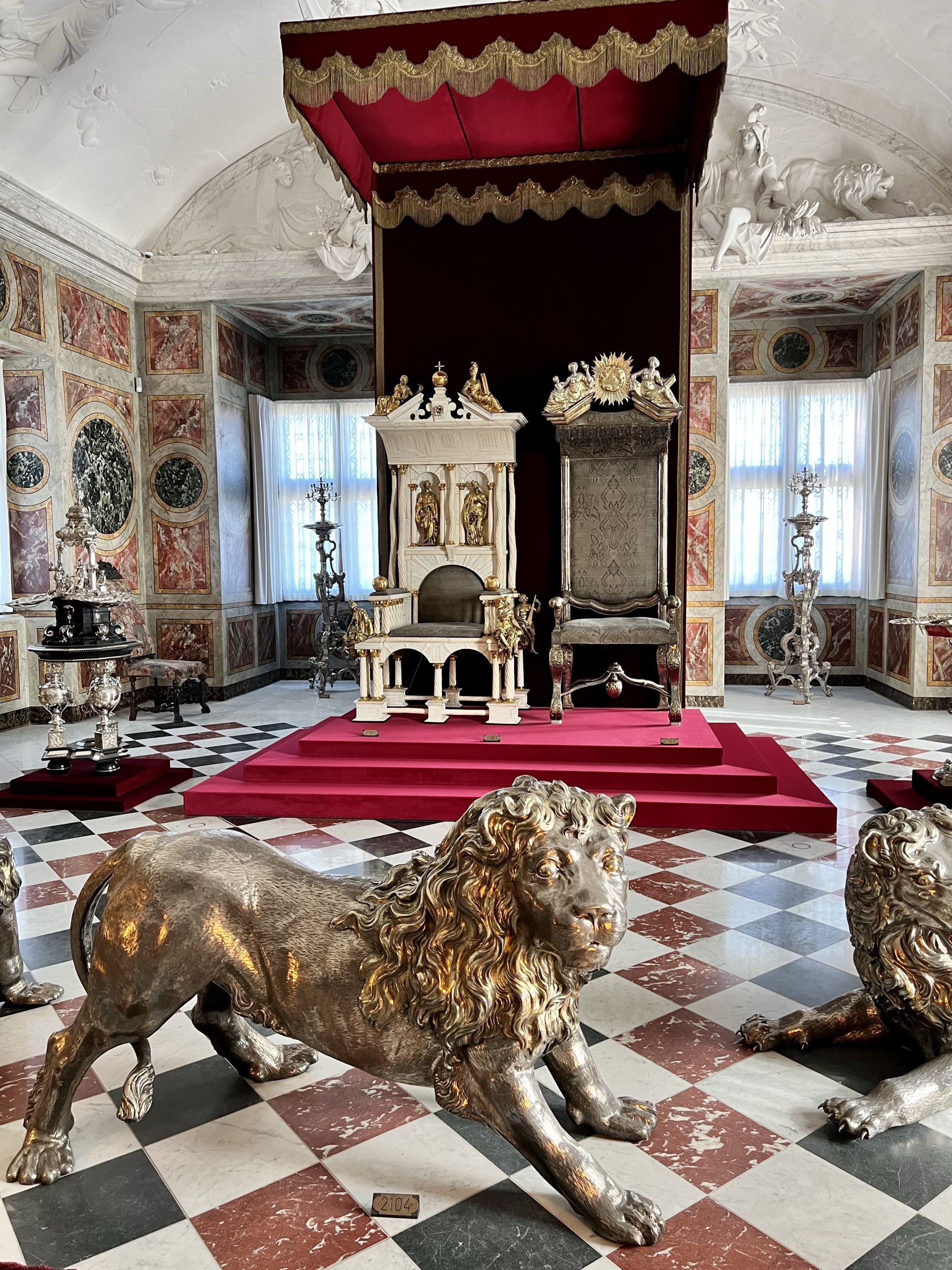 - Schloss Rosenborg: Für mich als Schmucki waren die Kronjuwelen und vor allem die Ringsammlung der dänischen Monarchen mit das Beeindruckendste, was ich je gesehen habe. Von dem pinkfarbenen Diamanten träume ich noch lange. Das ganze Schloss ist toll zu besichtigen, weil man sehr nah an die Ausstellungsstücke herankommt. Sogar ans Königsklo! Unbedingt vorher online Tickets reservieren, die Ausstellung ist am Wochenende oft restlos ausverkauft. Auch hier hin sind wir mit dem Rad angekommen und haben danach noch einen Abstecher zur kleinen Meerjungfrau an der Uferpromenade Langelinie gemacht. Die komplette Innenstadt ist mit dem Fahrrad super erreichbar.