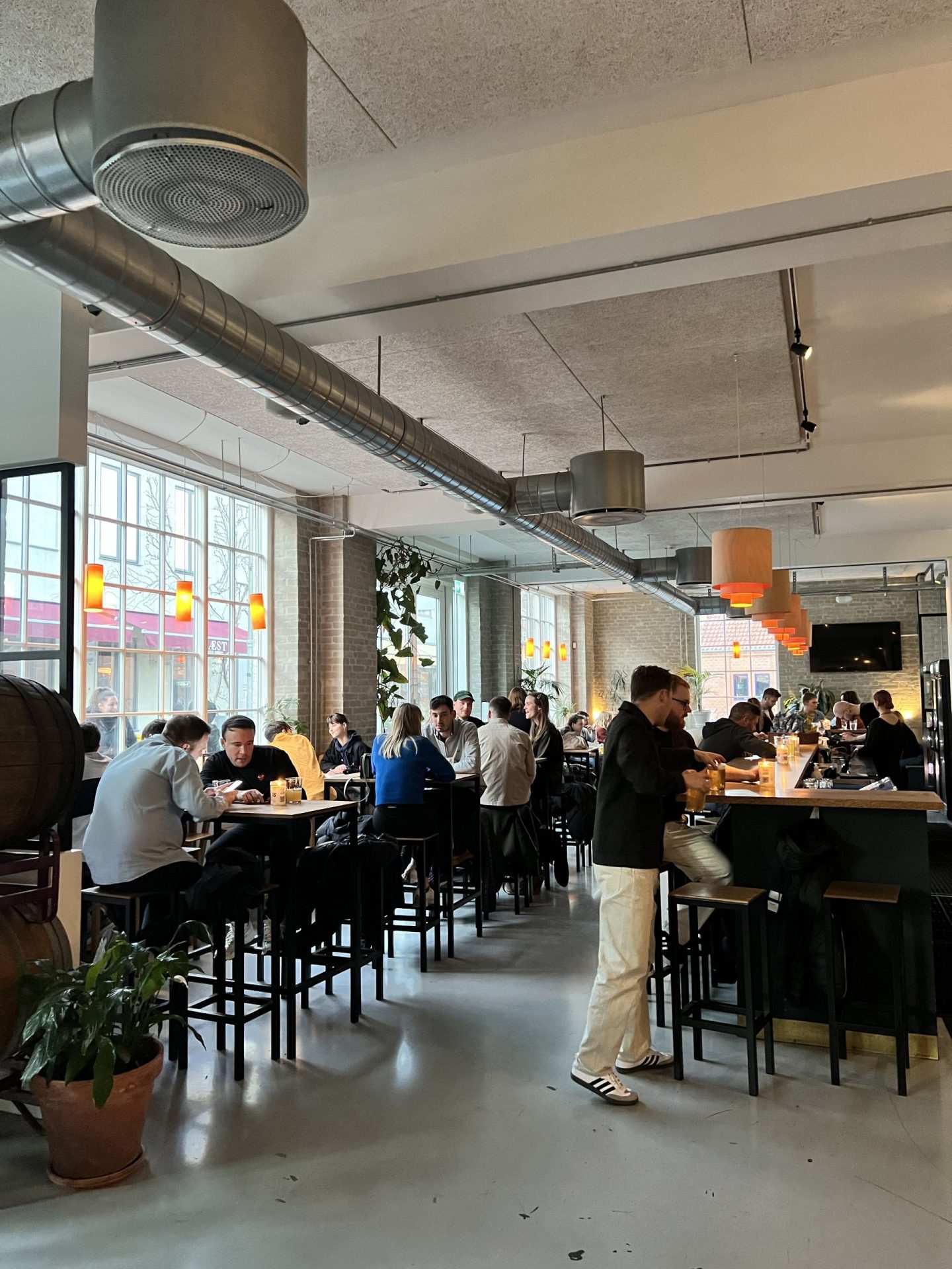 - Abendessen in der Tapperiet Brus. Das ist eine coole, junge Brauerei im nördlichen Teil von Nørrebro. Es gibt einen großen Gastraum, gut also auch für Gruppen. Flori behauptet, hier den besten Burger seines Lebens gegessen zu haben. Mein Veggie Burger mit Blumenkohl war auch super, aber am besten fand ich das hausgebraute IPL Bier, das nach Maracuja geschmeckt hat. Voll abgefahren! Danach war ich leicht angedüselt und der Heimweg dementsprechend beschwingt. Fast wäre ich noch in eines der Schwanen-Tretboote gestiegen…