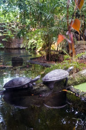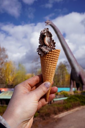 Wenig verkatert konnten wir so am nächsten Tag zu Fuß in den Zoo starten – und waren den ganzen Tag dort unterwegs. Nach dem Besuch in Deutschlands größtem Regenwald, dem Gondwanaland, waren wir aufgrund der hohen Luftfeuchtigkeit fix und foxi und brauchten alle eine große Portion Pommes. Der beste Tipp ist wirklich, diesen Teil des Zoos erst zum Schluss anzuschauen. Pauli fand nicht nur die Affen und Raubkatzen super, sondern auch die 20 lebensgroßen Dinosaurier, die überall im Zoo verteilt sind.