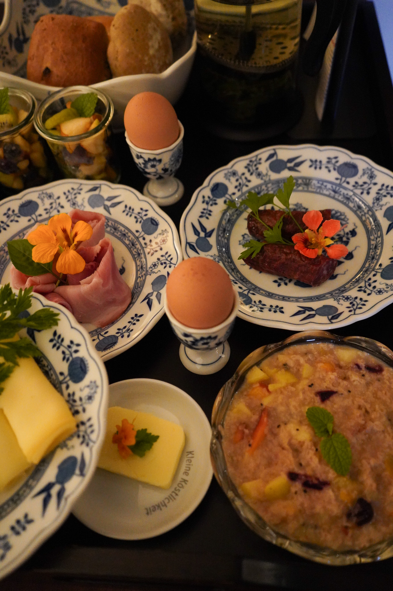 „Hotel Garni“ bedeutet Hotel mit Frühstück. Im Garni Hosler wird es am Vorabend bestellt und am nächsten Tag zur Wunschzeit von fleißigen Händen durch eine Durchreiche neben der Zimmertür serviert, sodass man gemütlich im Schlafanzug auf dem Zimmer frühstücken kann. Kein Stress mit Duschen, Zähneputzen oder Getümmel am Buffet, alles sehr entspannt und humorvoll. Ich konnte hier nach sehr anstrengenden Wochen echt so runterfahren, es war absolut wohltuend.
