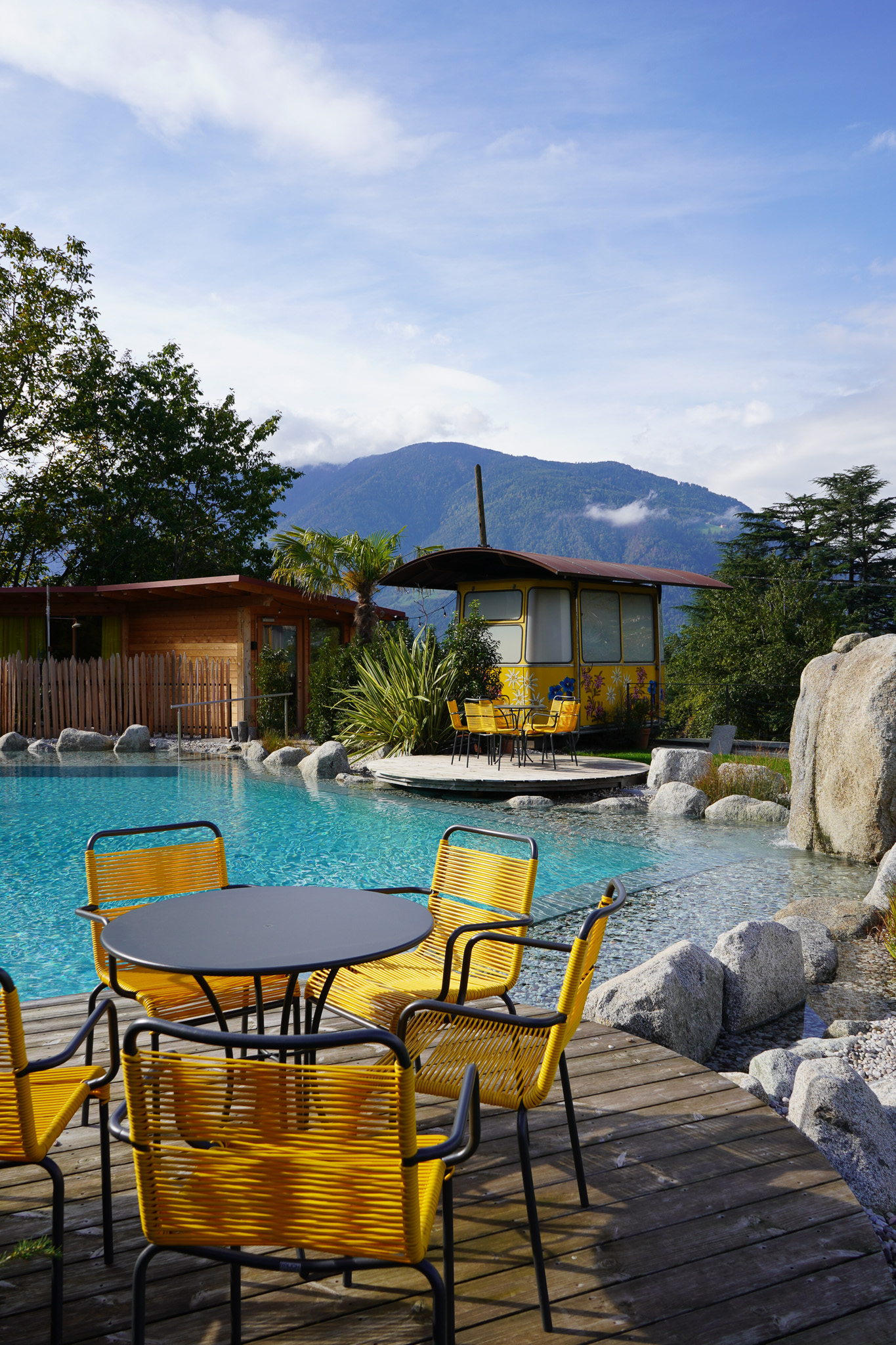 Der Pool ist eine kleine Erlebniswelt für Groß und Klein und wird durch die selbst gebaute Gondelsauna Gundula perfekt, die an Schlechtwettertagen schon frühzeitig für die Gäst*innen angeheizt wird. Im Herbst wird der Pool nicht beheizt, deshalb war meine Tochter nur mit dem großen Zeh drin. Im Sommer stelle ich mir das Setting zwischen den Bergen zu baden aber unschlagbar vor. Hier ein paar Eindrücke von dem Haus und der Umgebung: