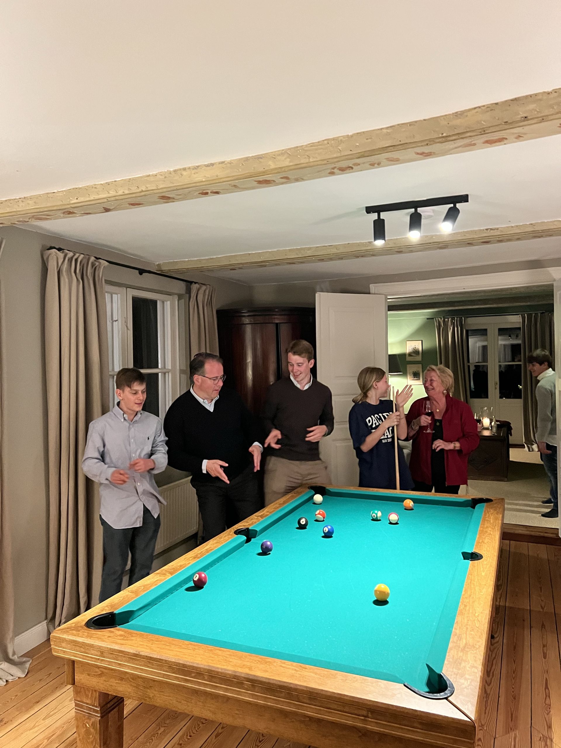 Wir waren neun Erwachsene und sechs Kinder zwischen drei und 13 Jahren. Die Zimmeraufteilung war für unsere Gruppe ideal, da es ein großes Kinderzimmer und zwei Zimmer mit Zustellbetten gibt. Jedes Zimmer hat ein eigenes Bad, fast wie in einem Hotel. Nur bei einem Zimmer liegt das Bad auf dem Flur und ein anderes Zimmer musste ein Klo teilen, was für uns als Familie kein Problem war.