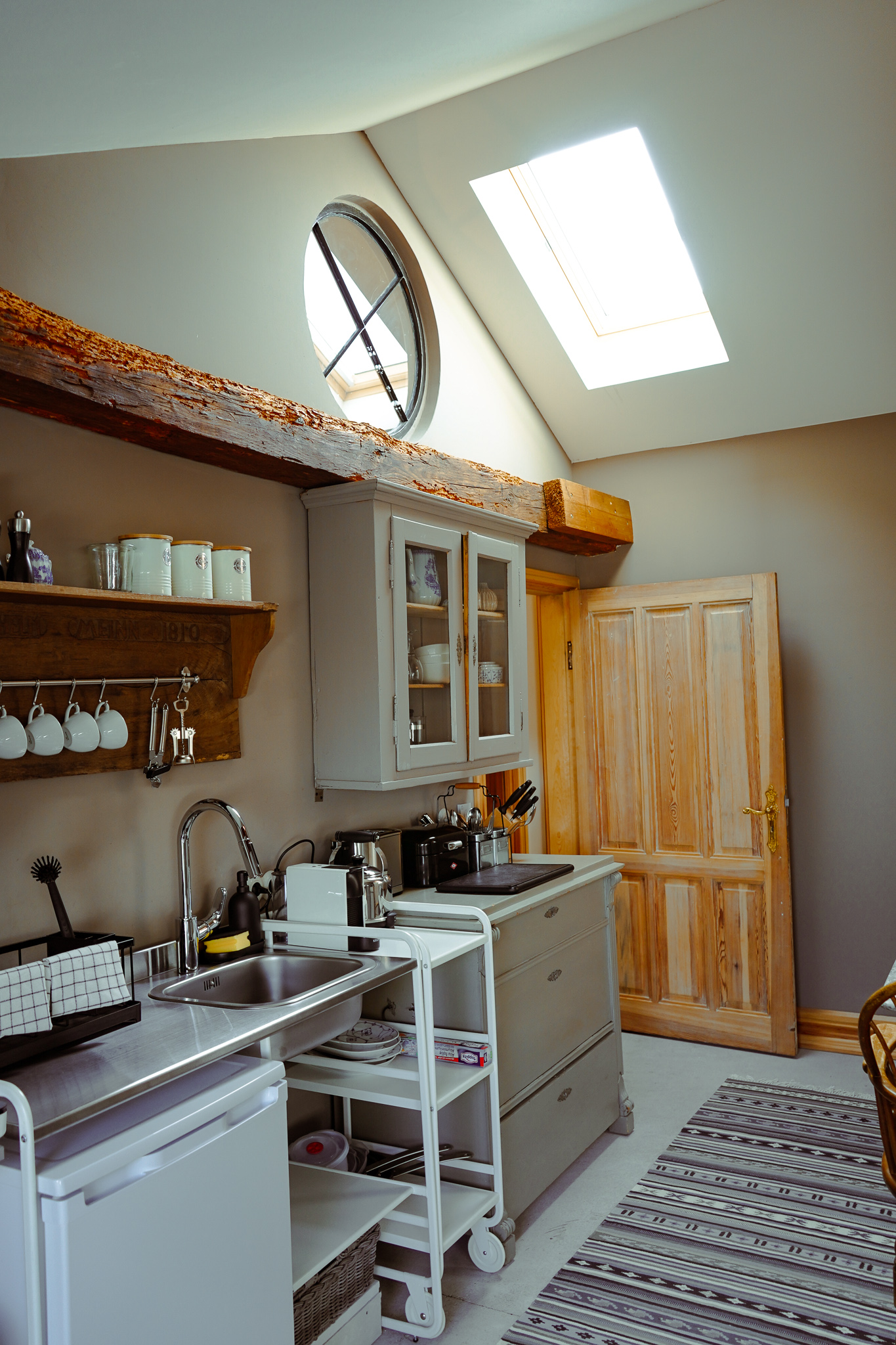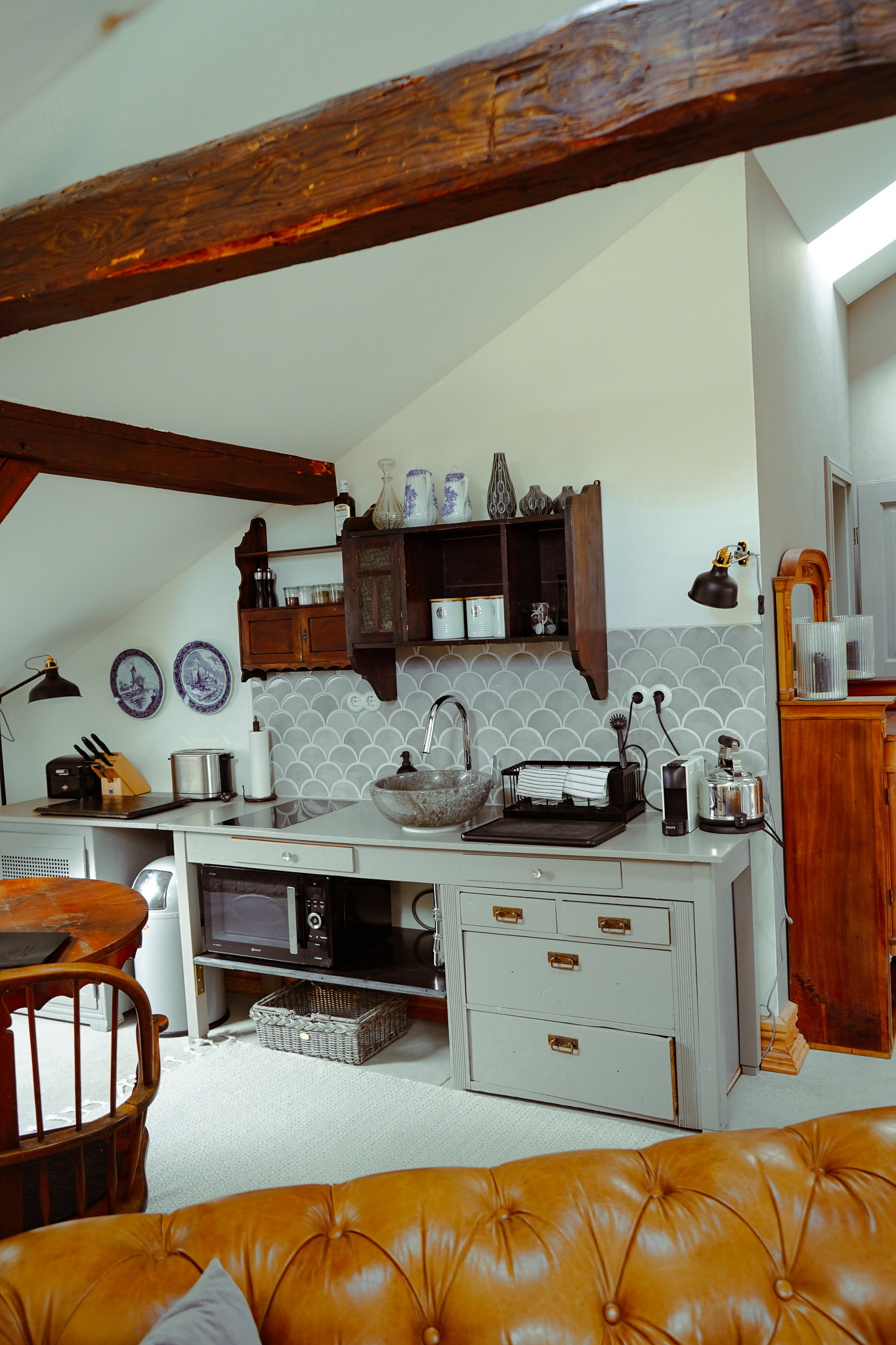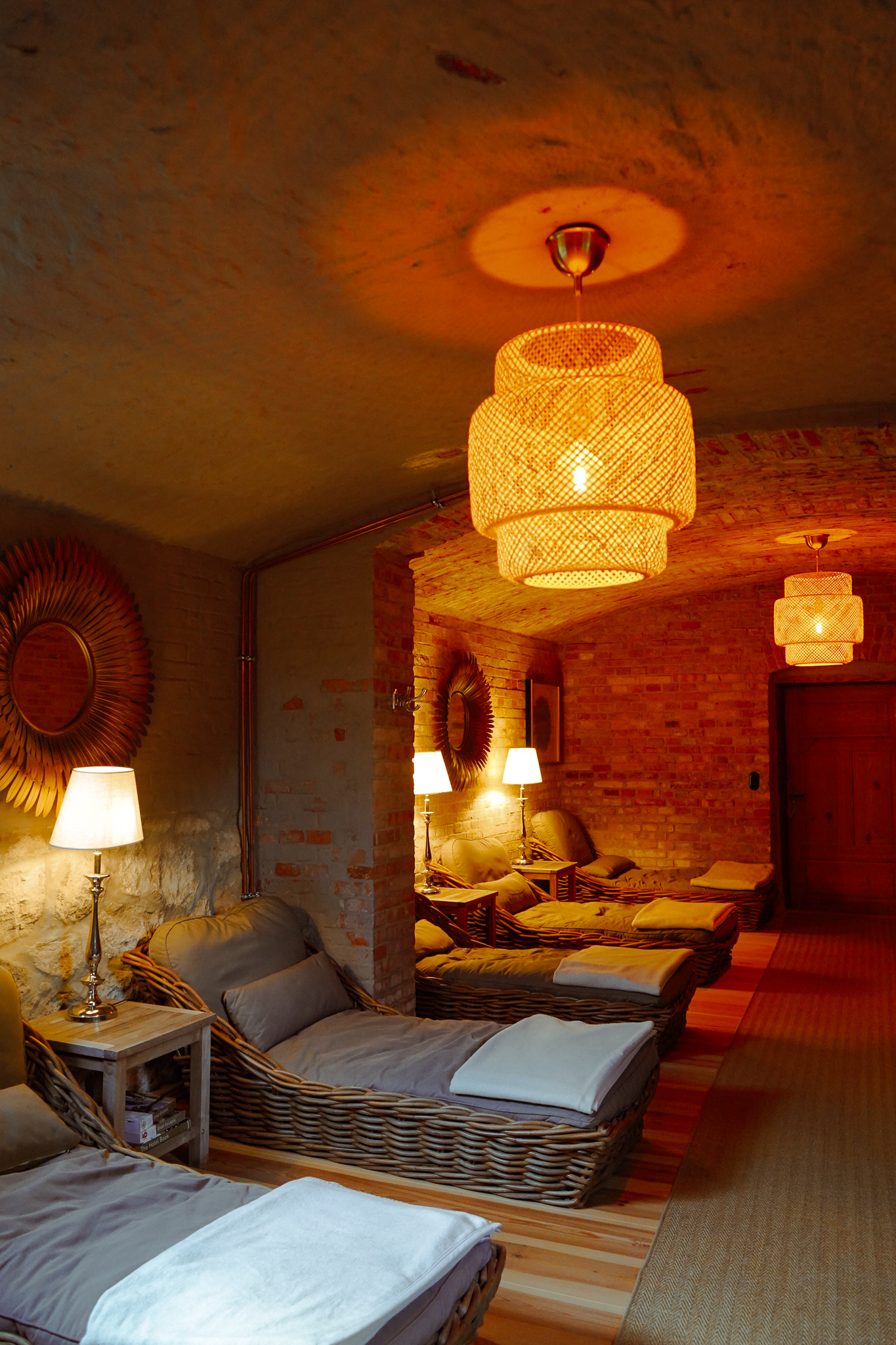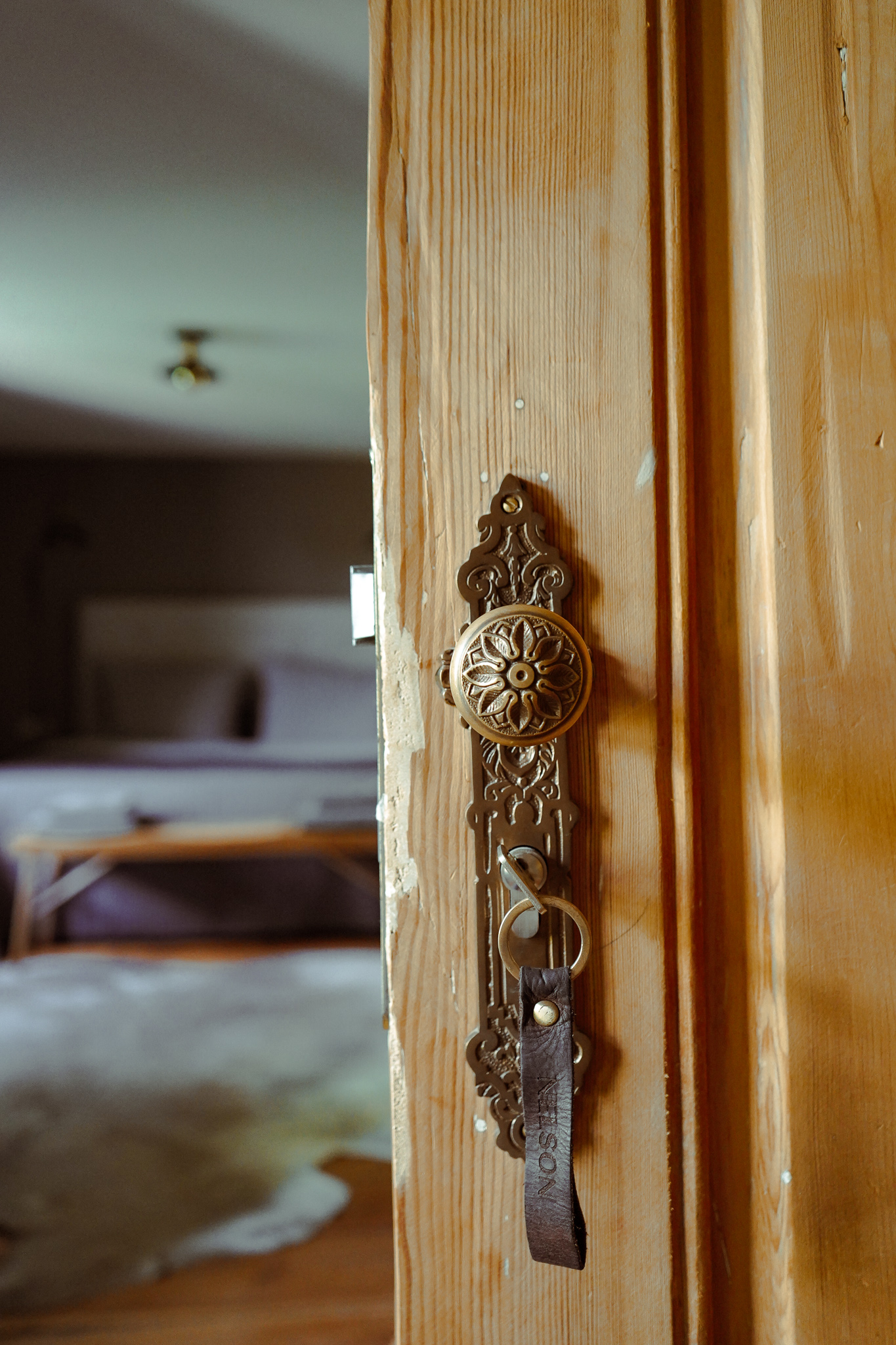 Gastfreundschaft liegt ihr im Blut. Sie kennt die Wünsche und Bedürfnisse ihrer Gäste, ist aber kleine klassische Hotelchefin, die mit dunkelblauem Blazer am Eingang steht und fragt, ob man einen schönen Tag hat. Eher trifft man sie früh morgens im Garten in Leggings und Sneaker, wenn sie mit den beiden Hunden Ingwer und Atesh von einem Spaziergang über die angrenzenden Felder kommt. Sie dekoriert drinnen und draußen frische Blumen, zündet abends überall Kerzen an und drückt uns vor der Treppe schnell noch eine 6er-Packung Eier für das Frühstück in die Hand – die stammen natürlich aus dem Betrieb von Karl und sind bio.