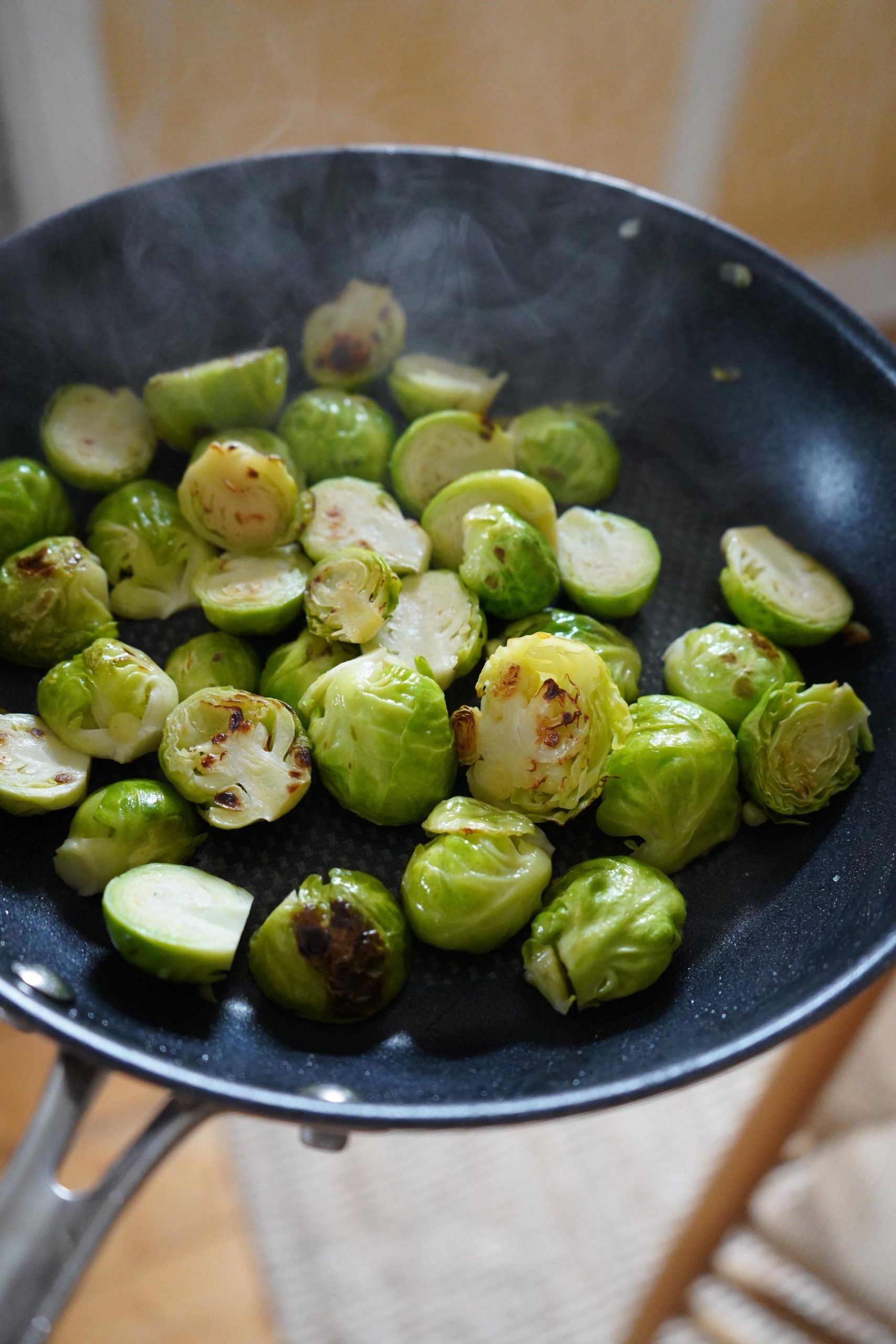 Zwei Hacks für die herbstlichen Goodies von Chefkoch Flori: Rosenkohl nicht kochen, sondern halbieren und in der Pfanne mit Öl und Meersalz rösten. Und Süßkartoffeln VOR dem Kochen schälen, nicht danach, wenn sie heiß und weich sind.