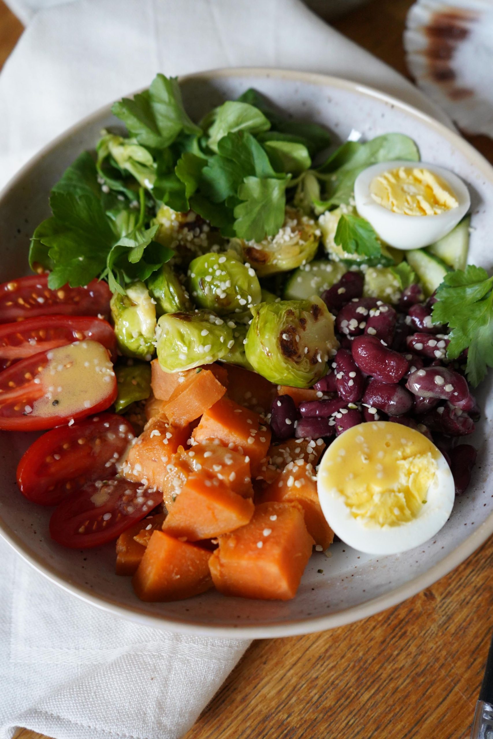 Jetzt muss mein schöner Salat gehaltvoller sein, denn kaum wird es kälter habe ich andauernd saumäßigen Hunger. Eine Harvest Bowl ist schnell gemacht.