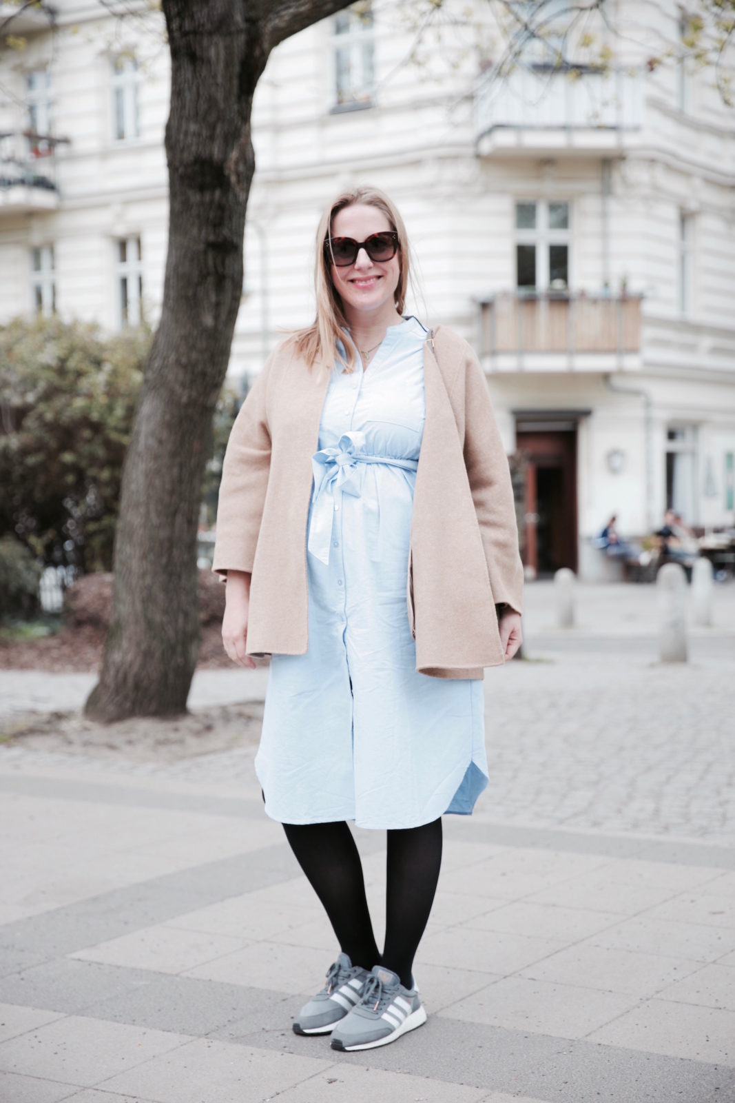 Das Yoguretten-Kleid hat noch eine hellblaue Schwester, an der ich ebenfalls nicht vorbei gehen konnte – in #SSW33 muss ich mitnehmen, in was ich reinpasse. Die schwarze Stützstrumpfhose versaut natürlich den kompletten Look, aber ich spekuliere auf wärmere Tage, an denen ich dieses Teil nur mit Sandalen ausführen kann. Wahrscheinlich bin ich dann schon Mutter. Aaaaaaaaaaah, Wahnsinn!
