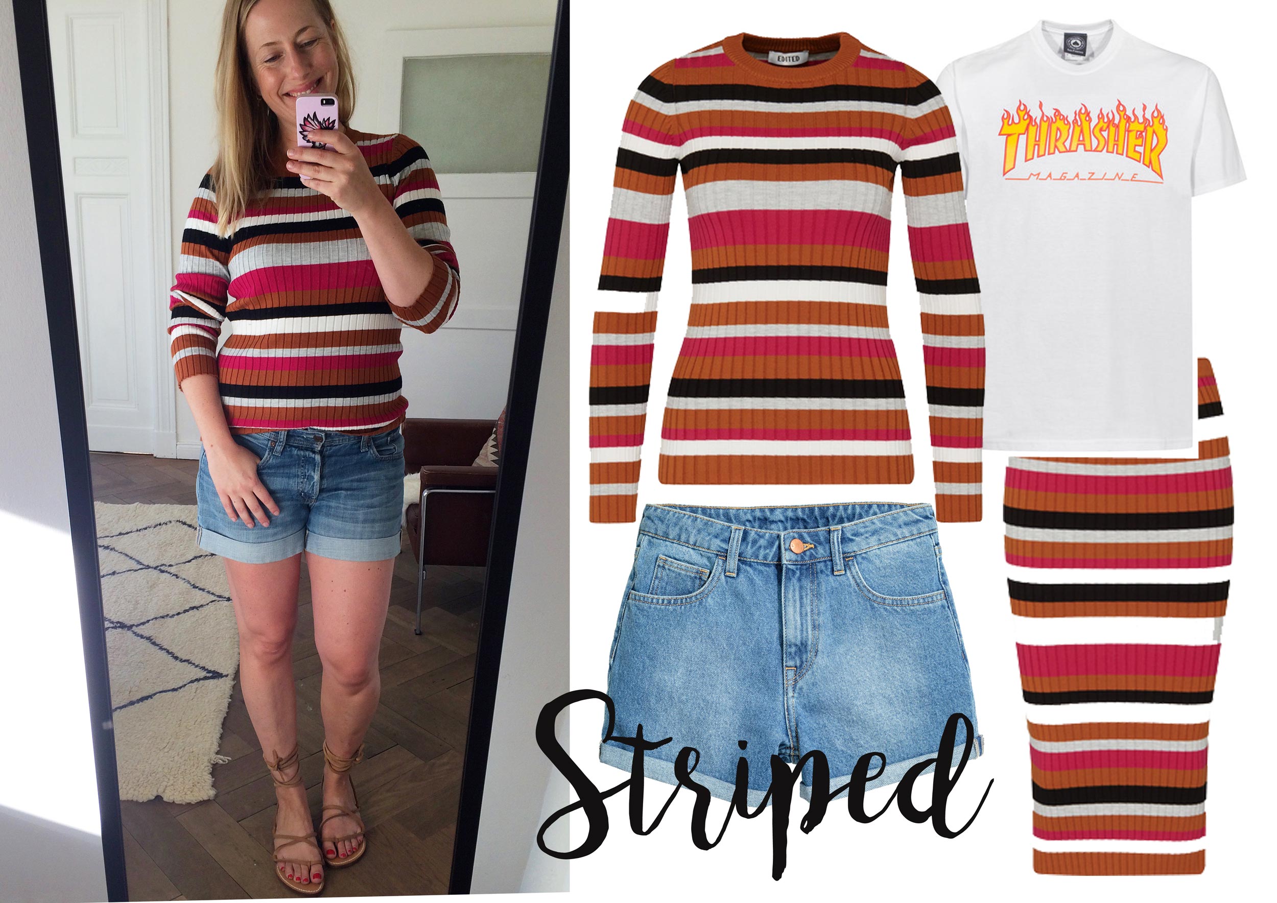 Pullover: Edited || Rock: Edited || Jeansshorts: H&M || Sandalen: Mango (so ähnlich hier) || T-Shirt: Thrasher