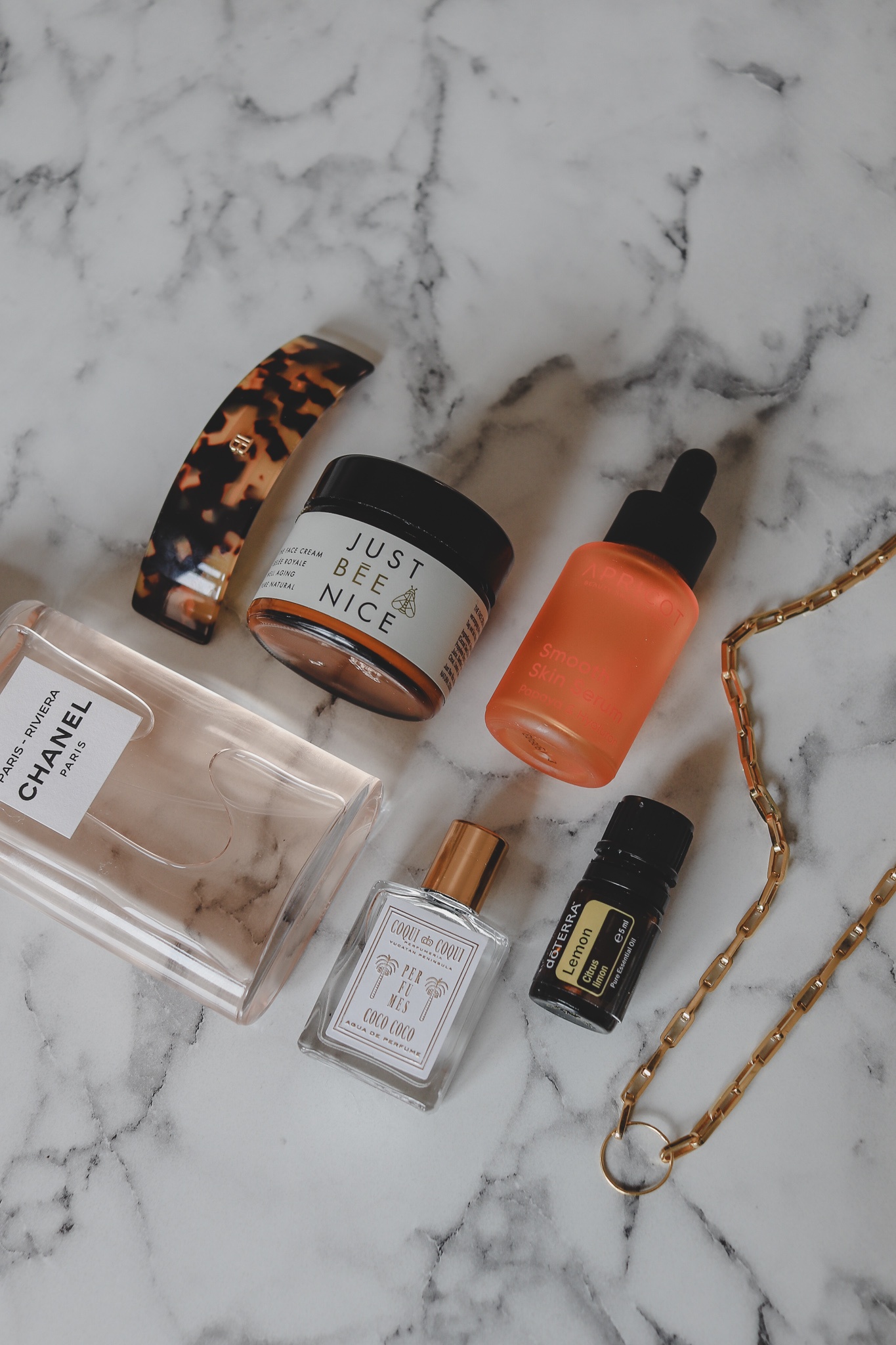 Ein sommerliches Parfum sorgt derweil für Leichtigkeit am Morgen. Ätherische Öle lindern Heuschnupfen-Symptome oder helfen meiner Tochter beim Einschlafen. Bei Einschlafproblemen einen Tropfen Lavendelöl mit einem Trägeröl, zum Beispiel Mandelöl, mischen und sanft in die Fußsohle einmassieren. Als frischer Kick gegen das Nachmittagstief wirkt das manchmal Wunder: Ein Tropfen Zitronenöl in den Handflächen verreiben und tiiief einatmen.