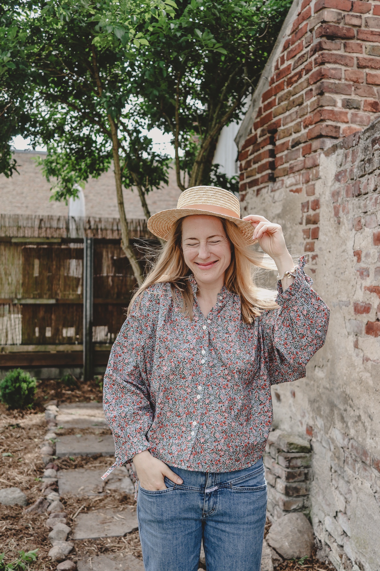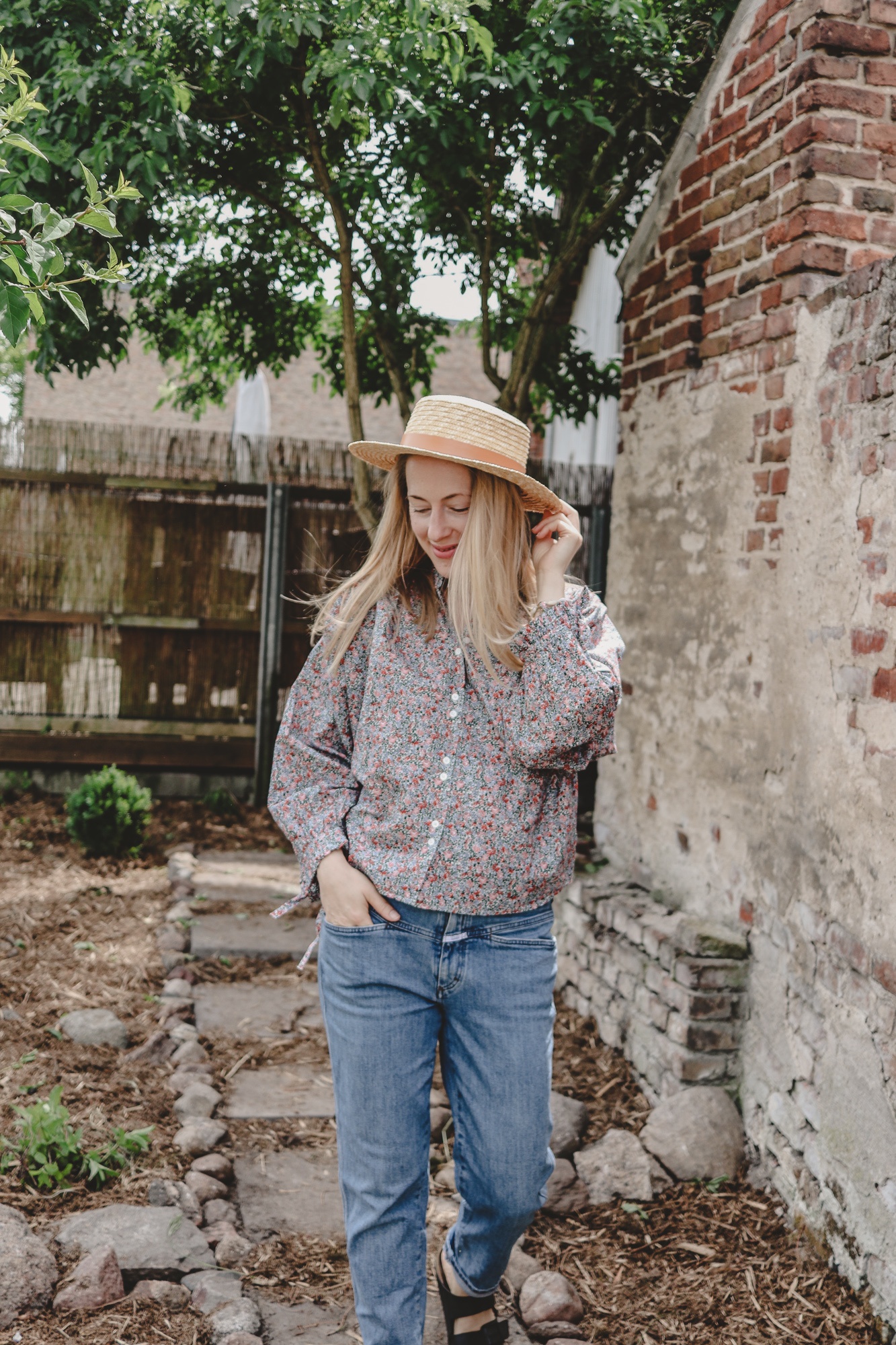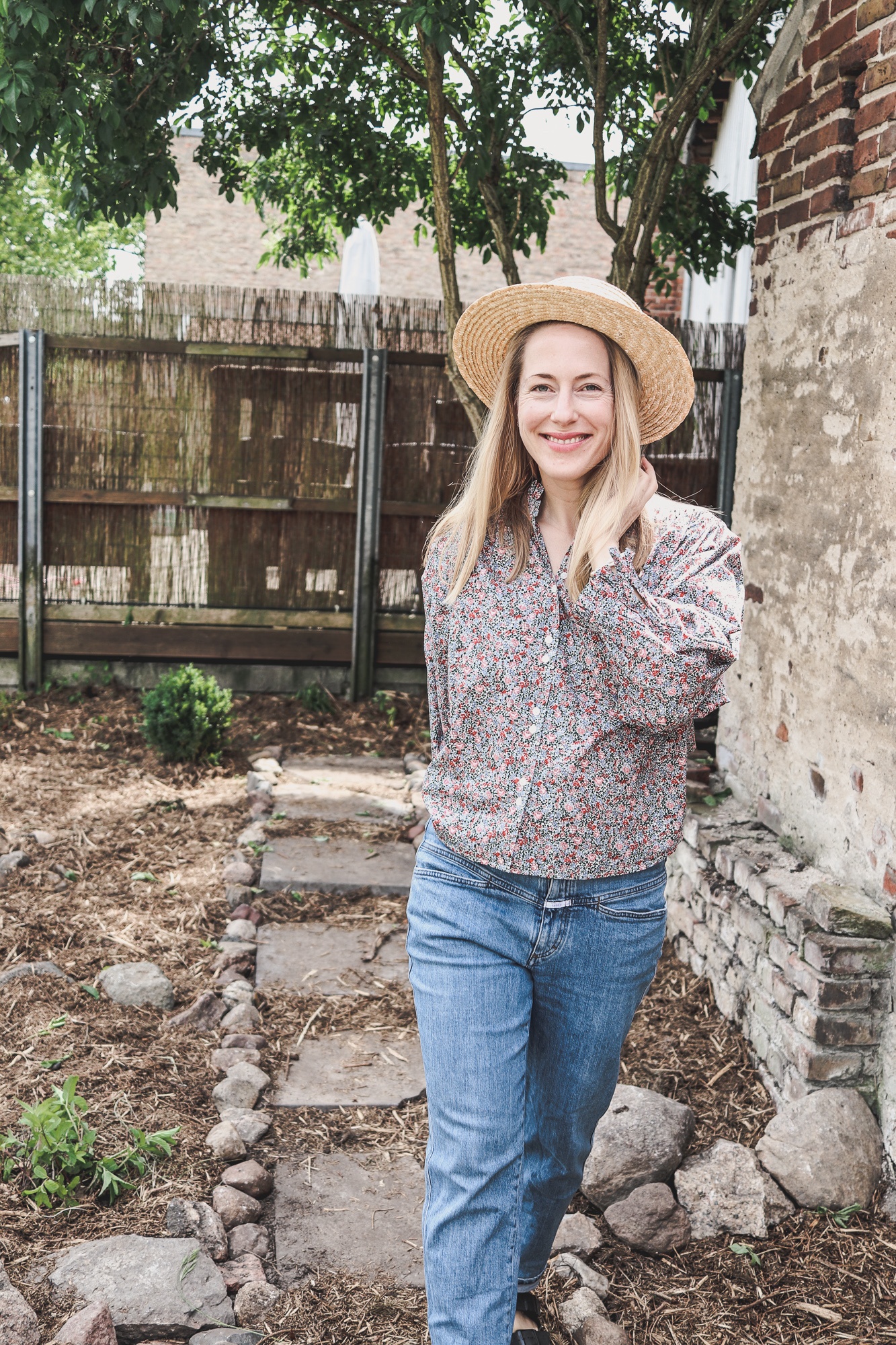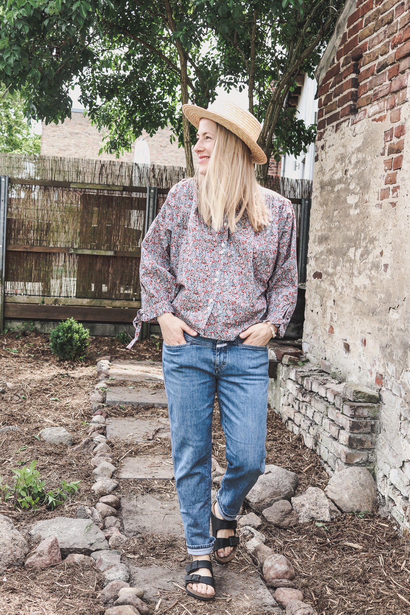 Hut: Lack of Color, Bluse: Doen, Jeans: Closed, Schuhe: Birkenstock