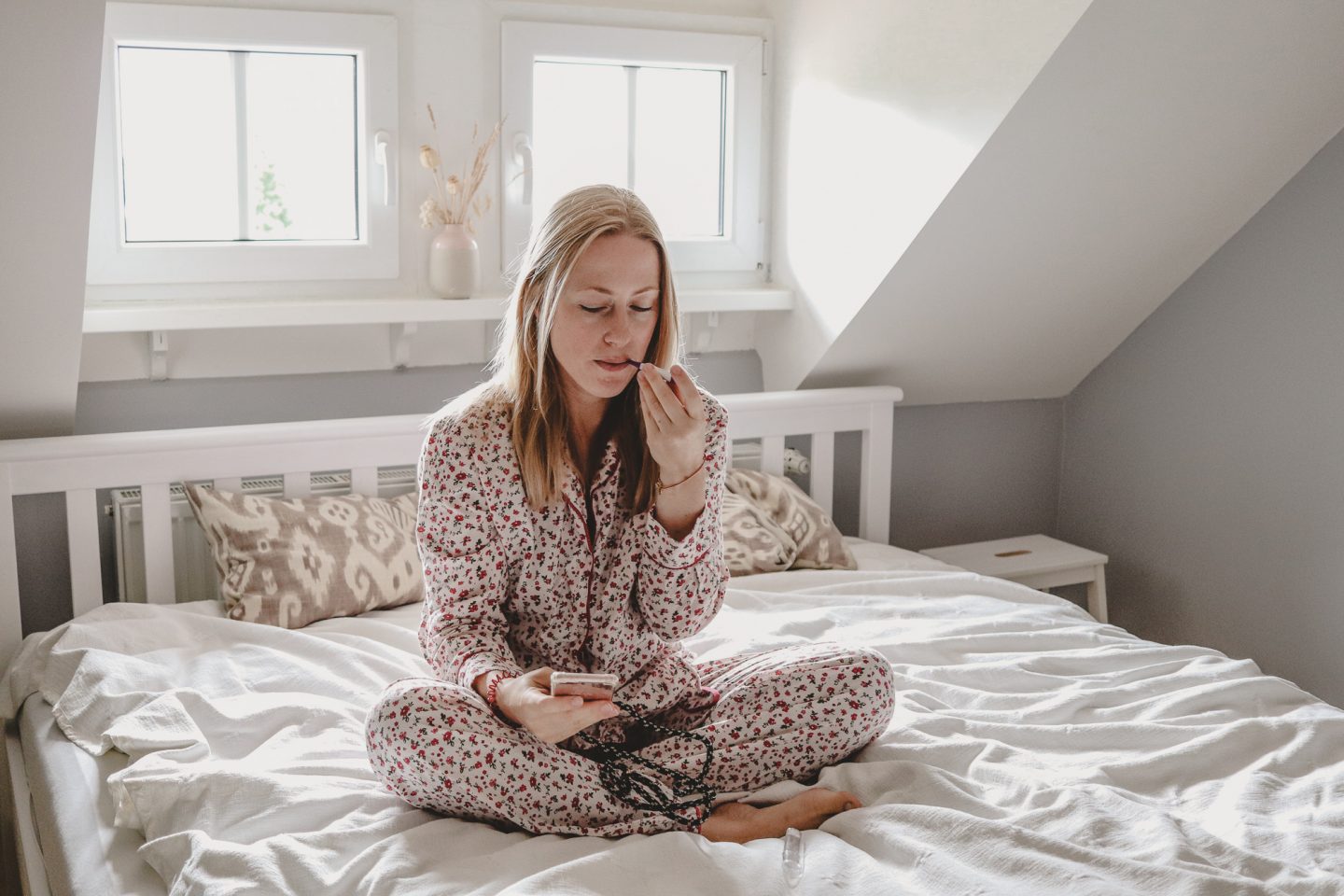 Bei als „unfruchtbar“ diagnostizierten Paaren passiert es jedoch immer, dass sie spontan schwanger werden, so bald der Kinderwunsch aus dem Kopf ist. Da wir uns aktuell aber kein zweites Kind wünschen, möchte ich digital verhüten und dabei meinen Zyklus gern genauer beobachten. Bei jedem Frauenarztbesuch bin ich nämlich die Sorte von Patientin, die nie weiß, wann der letzte Tag der Regel war und wie lange der Zyklus im Durchschnitt ist.