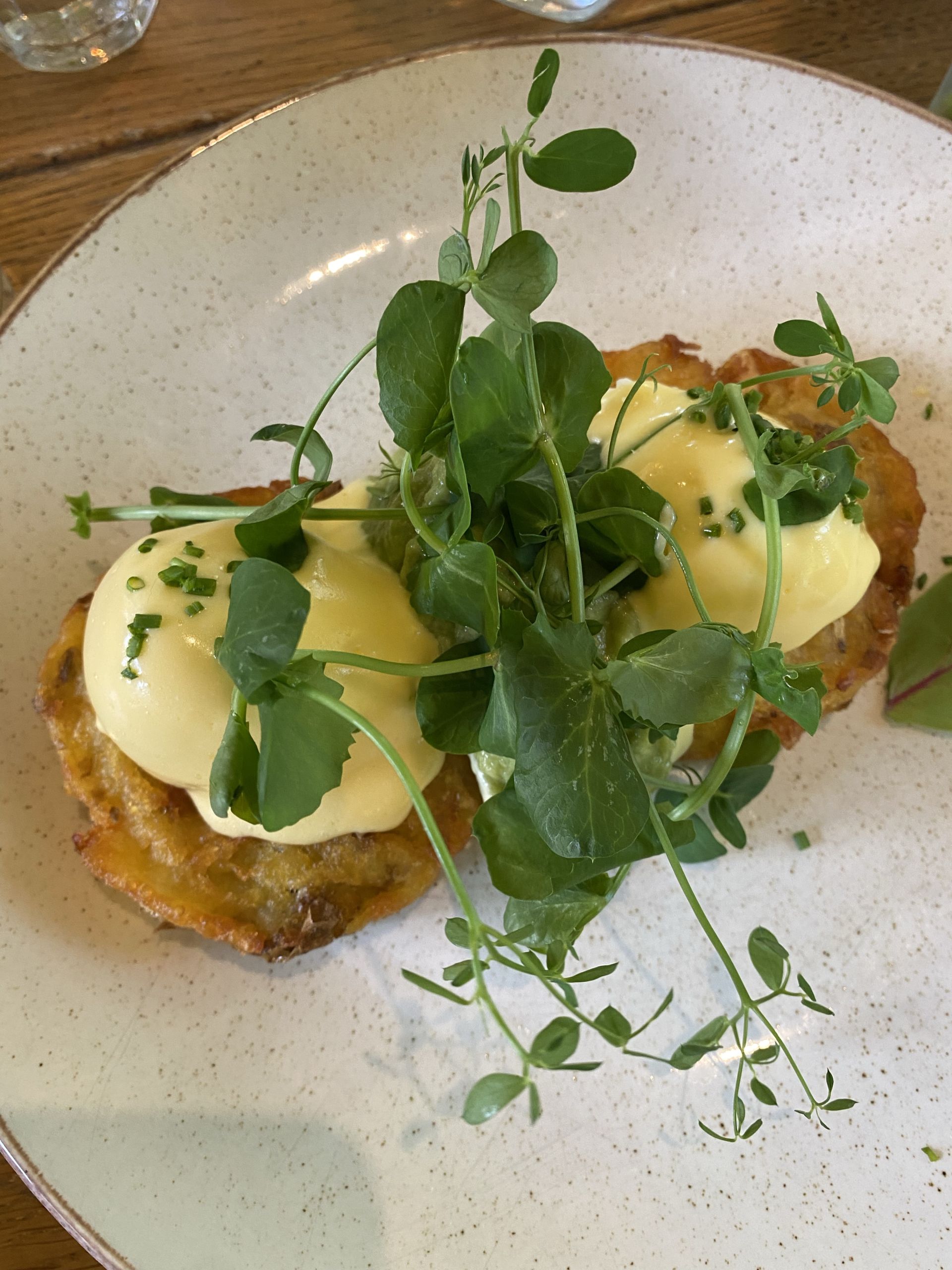 - Eggs Benedict und Pfannkuchen im Dignita Amsterdam