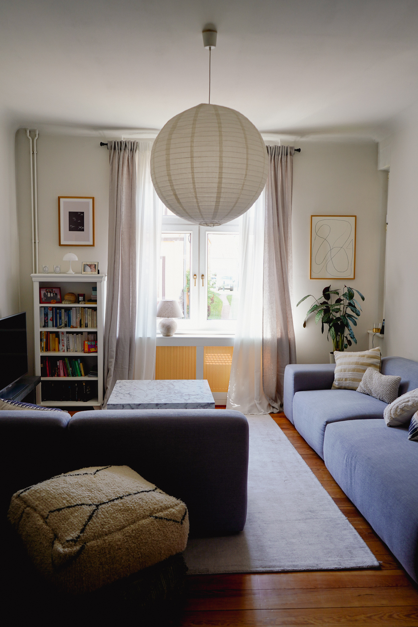 Trotzdem gibt es vereinzelt ein paar Veränderungen und von denen berichte ich euch heute. Immerhin sind wir jetzt das fünfte Jahr in diesem Haus und sehen, wo etwas für unseren Alltag als Familie fehlt. Das schwebende Wandregal aus Eichenholz von Holzliebling über Etsy macht sich gut in der Küche, ein paar Bilder sind neu und die Sofas stehen auch anders. Im Herbst wollen wir die Wände streichen und auch der Lack an den Türen braucht bald ein Make-over. Ein Highlight für mich sind die Heizkörperverkleidungen, hinter denen wir endlich die Standard-Heizkörper verstecken können. Sie wurden von der Lebenshilfe Brandenburg für uns angefertigt. Nach und nach möchte ich das ganze Haus damit ausstatten.