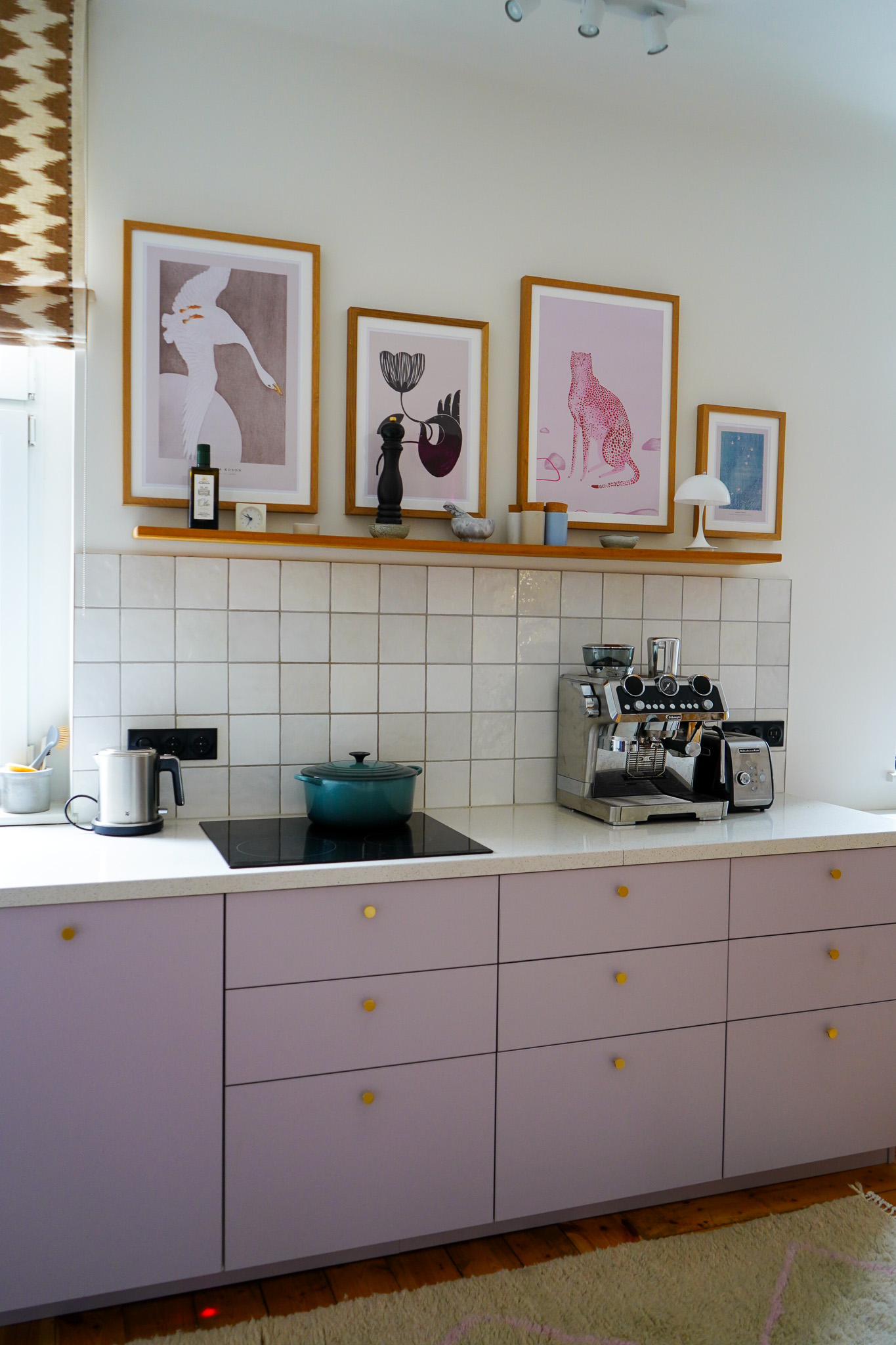 Die Frontplatten stammen von der Firma Pfleiderer und quellen nicht auf, die Farbe heißt Rose (U17501). Wir haben zwei Türen durch insgesamt vier neue „Maximera“-Schubladen von Ikea ersetzt, damit wir mehr Platz auf der Arbeitsfläche haben. Zudem gab es einen neuen Küchenschrank, in dem nun all das Zeug verschwinden kann, das nicht jeden Tag in Gebrauch ist, wie z. B. Vasen oder Etageren, Kerzen, Reiben usw. Die Bilder über der Küchenzeile ändere ich, aber so weit bin ich bisher nicht 🙂